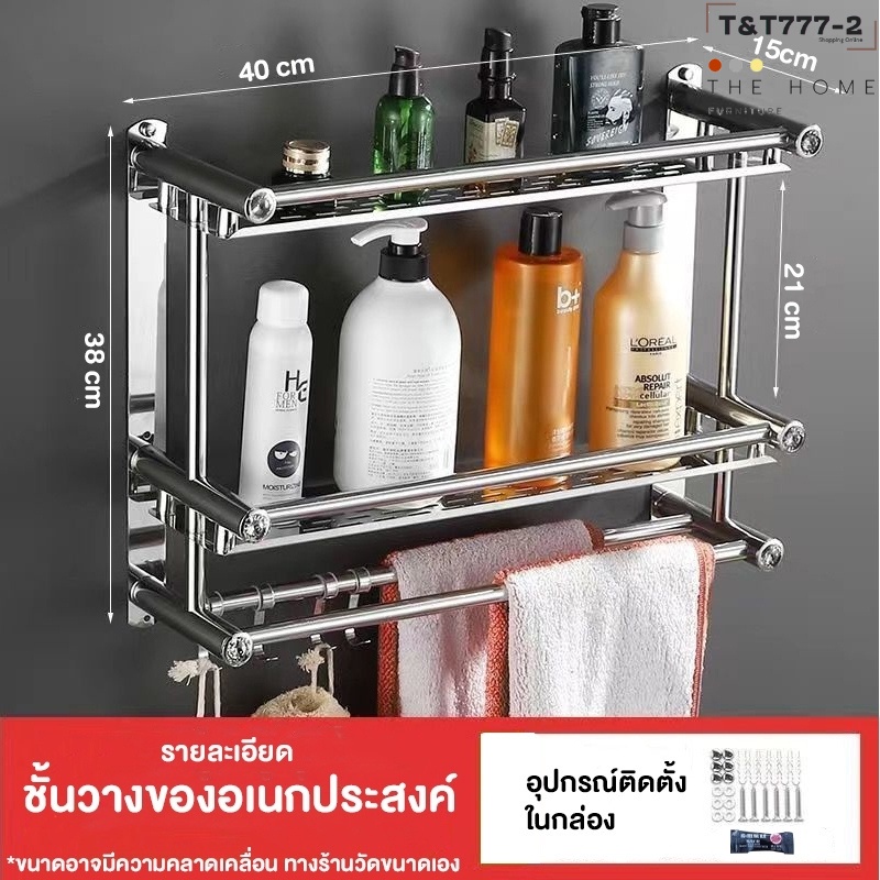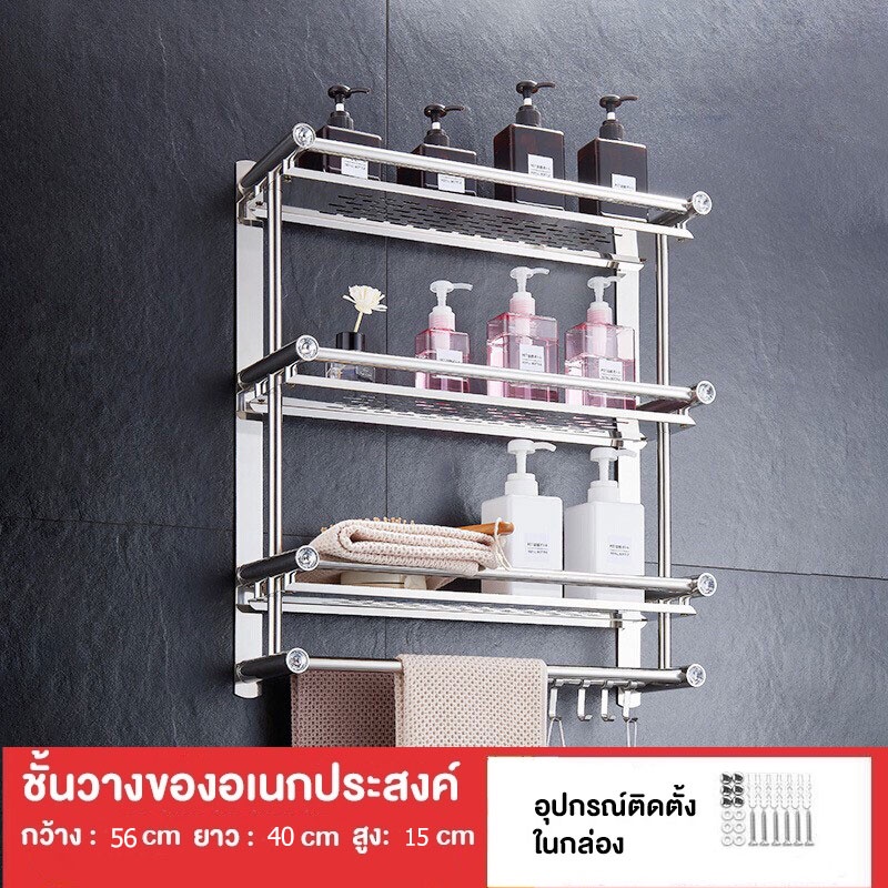 COD ชั้นวางของในห้องน้ำ 1-3ชั้น ไม่ต้องเจาะ ไม่เป็นสนิมค่ะ พร้อมราวตากผ้าและตะขอ เหล็กกล้าไร้สนิม