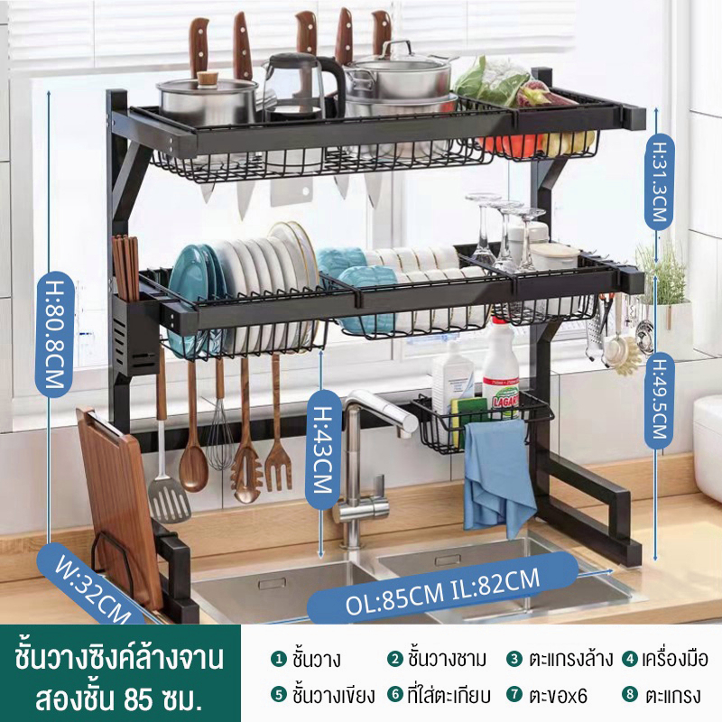 RACK 🔥อัพเกรด🔥ชั้นวางจาน สแตนเลส 1/2/3ชั้น ชั้นวางจานบนซิงค์ มีฝาป้องกันฝุ่นละออง ชั้นวางชามครัว 65-75-85-95-105-125 ซม.