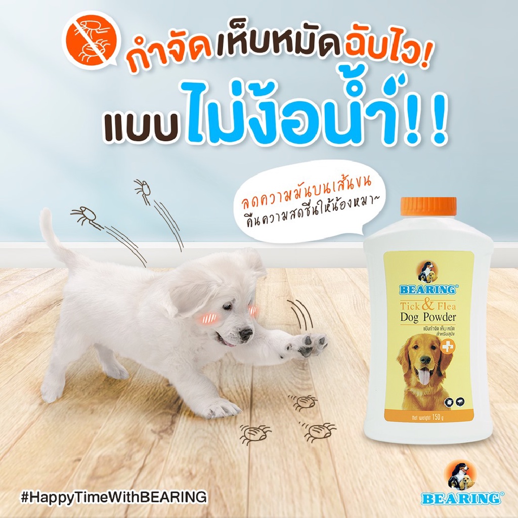 BEARING Tick & Flea Dog Powder แป้งกำจัดเห็บหมัด สำหรับสุนัข แป้งโรยตัวสุนัข ลดความมันผิวหนัง เส้นขน
