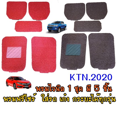 ถูกที่สุด‼✔พรมปูพื้นรถยนต์ พรมไวนีลดักฝุ่น ฟรีไซส์ สำหรับรถเก๋งรถกระบะ จำนวน 5ชิ้นมี 8สี