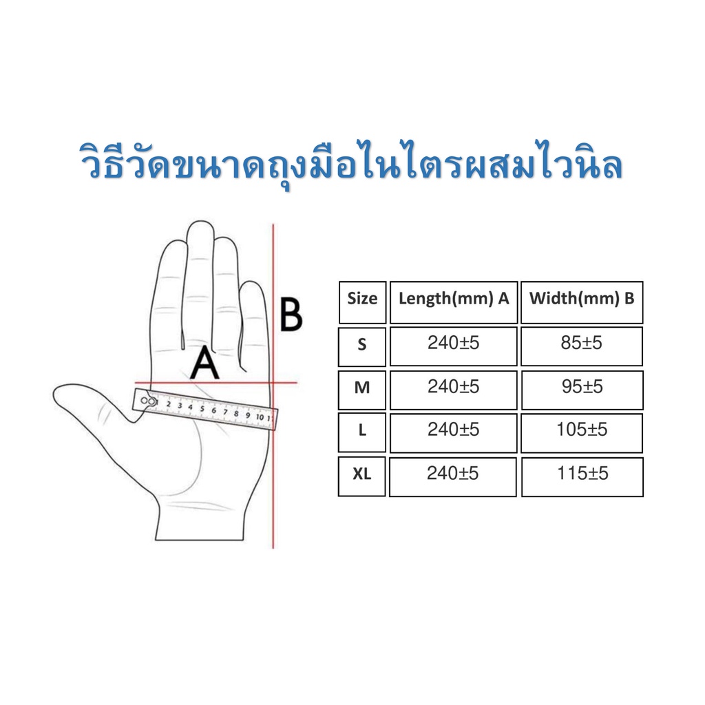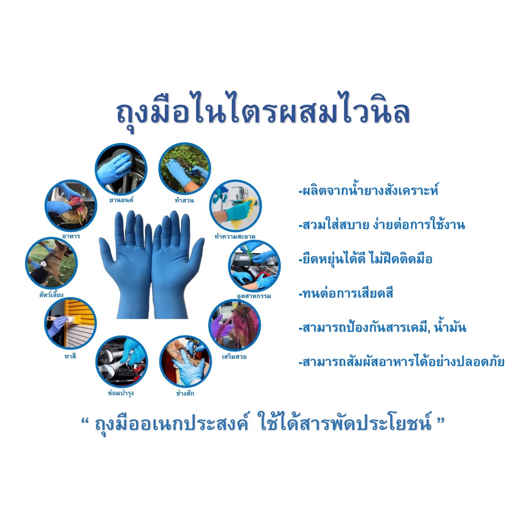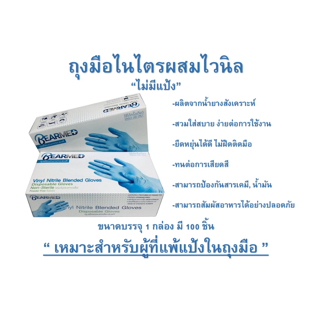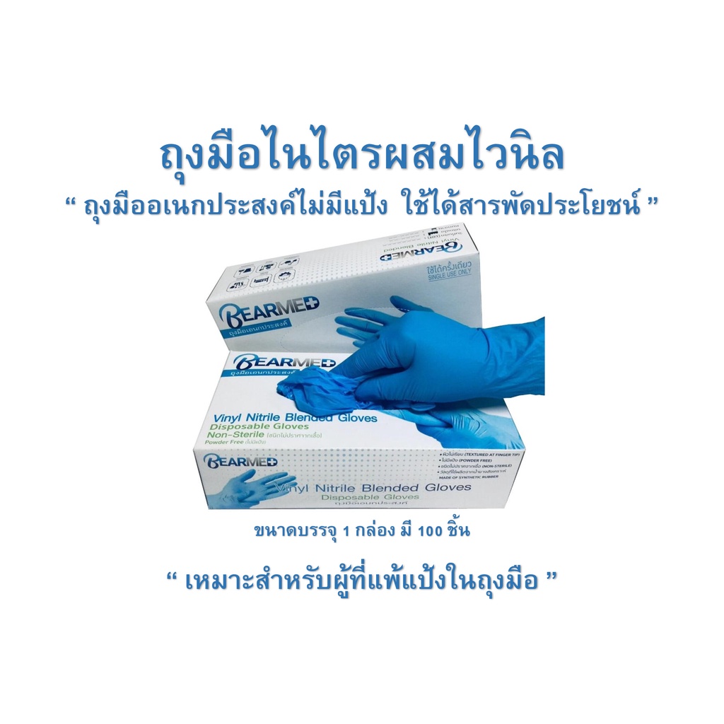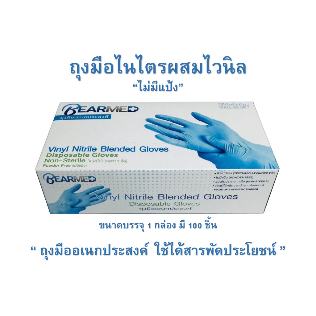 BEARMED ถุงมือไวนิลผสมไนไตร/สีฟ้า ถุงมืออเนกประสงค์ ใช้แล้วทิ้ง ทำความสะอาด