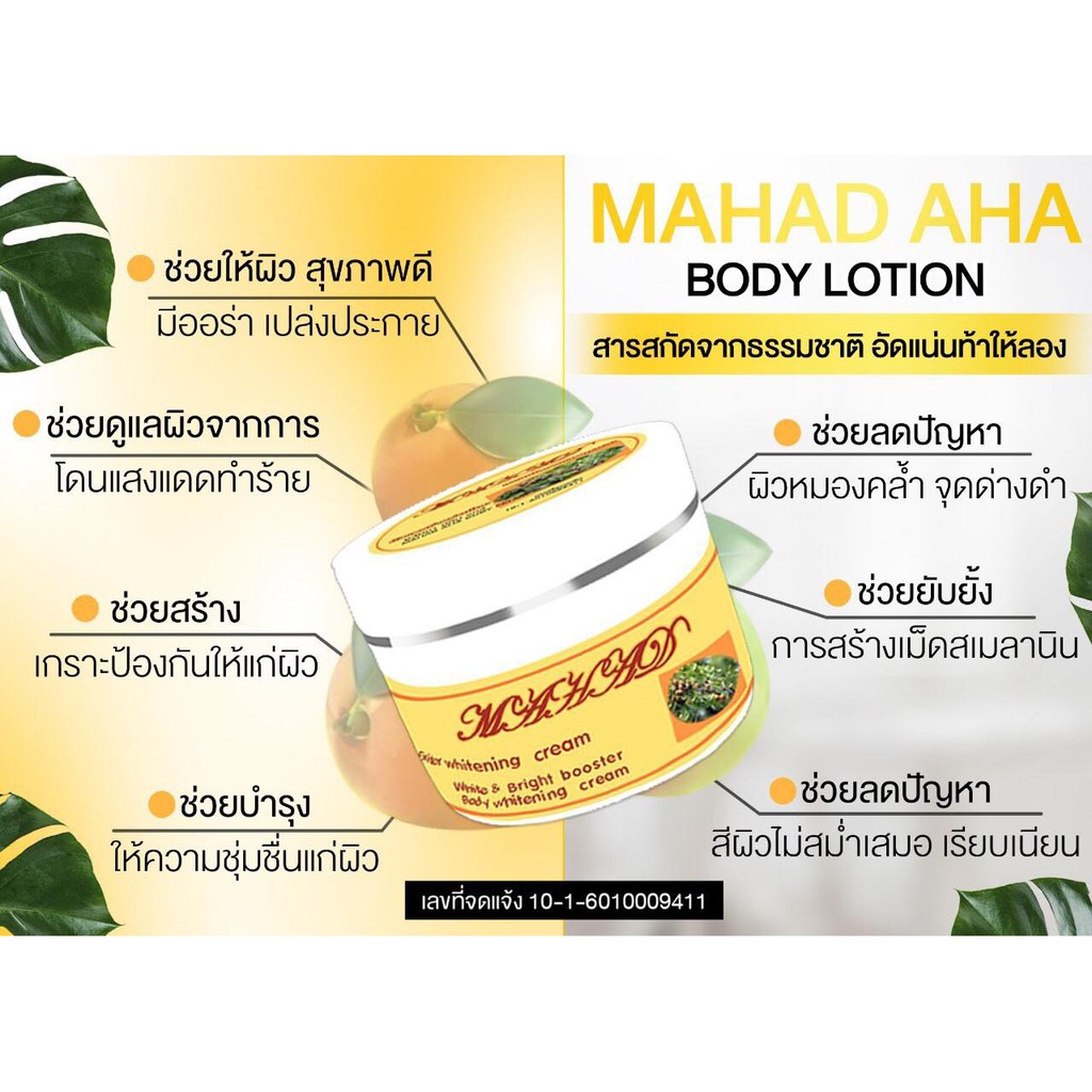 โลชั่นหัวเชื้อมะหาด MAHAD AHA BODY CREAM ขนาด 100 g.
