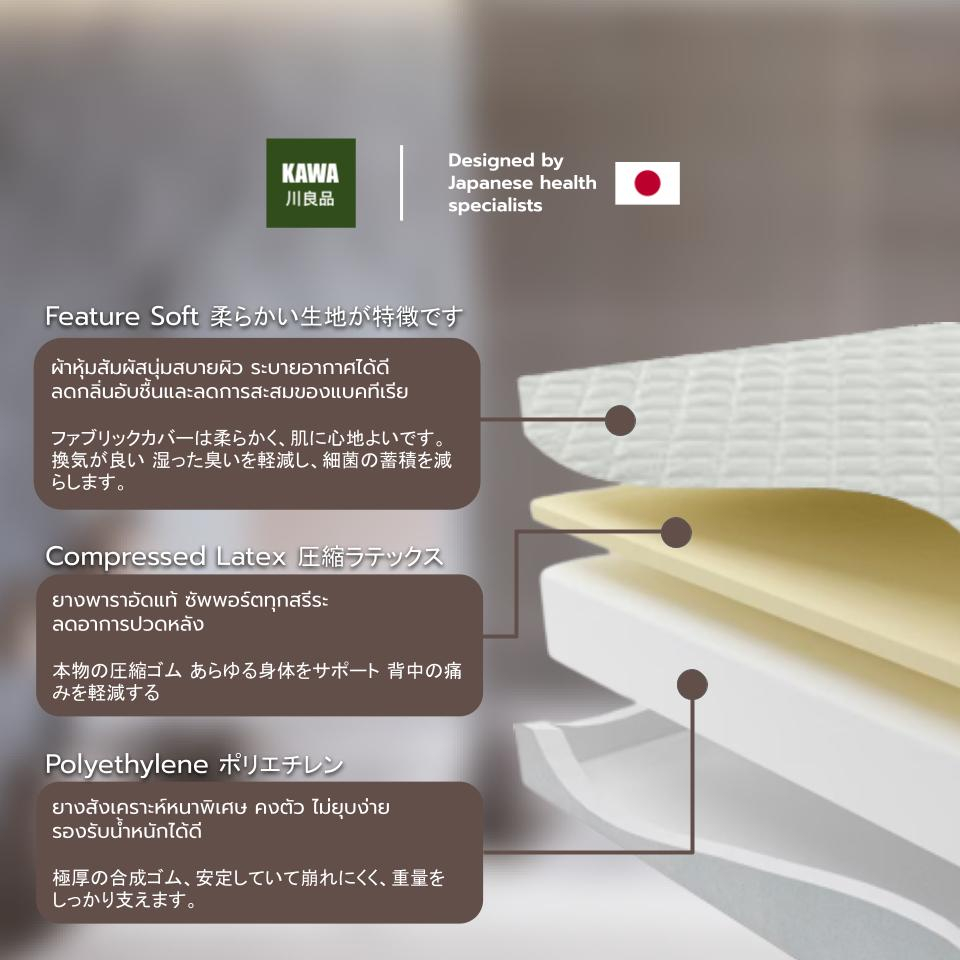 Kawa Mattress ที่นอนยางพาราแน่น Hybrid รุ่น Fudo ที่นอนยางพาราแท้ 100% ช่วยลดอาการปวดหลังได้ดี แถมหมอนยางพารา