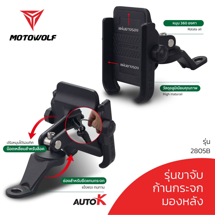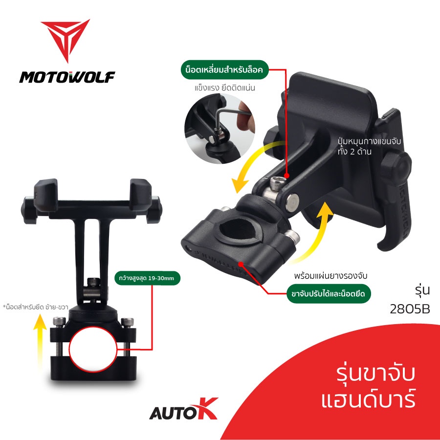 ที่จับมือถือMOTOWOLF อลูมิเนียมอัลลอย รับประกัน 1ปี รุ่น 2805