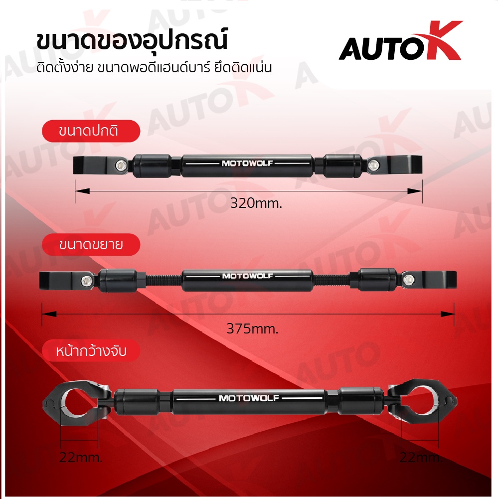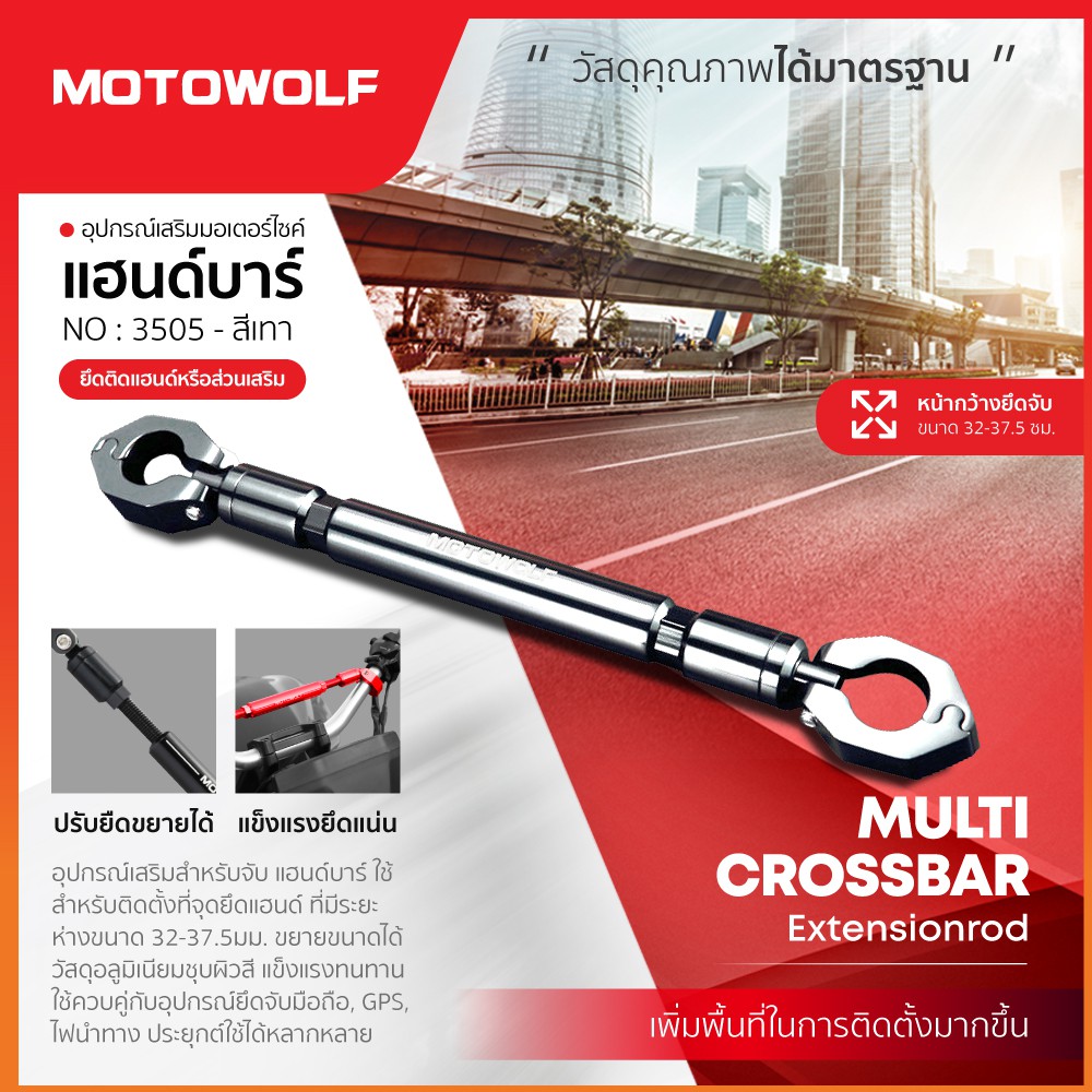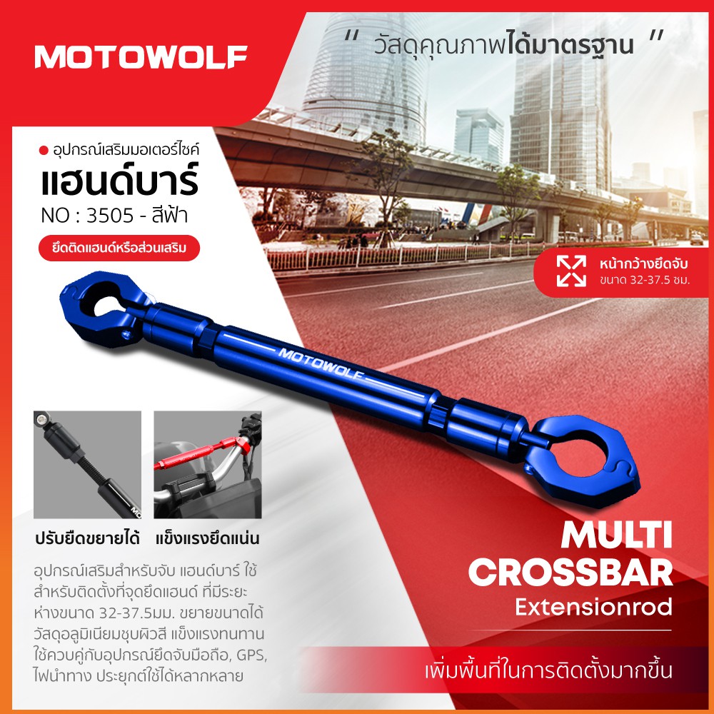 บาร์เสริมยึดแฮนด์ 22มิล MOTOWOLF รับประกัน 1ปี รุ่น 3505