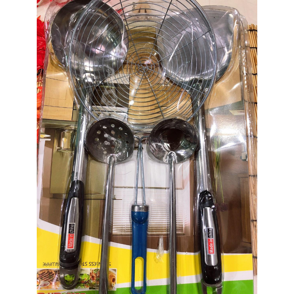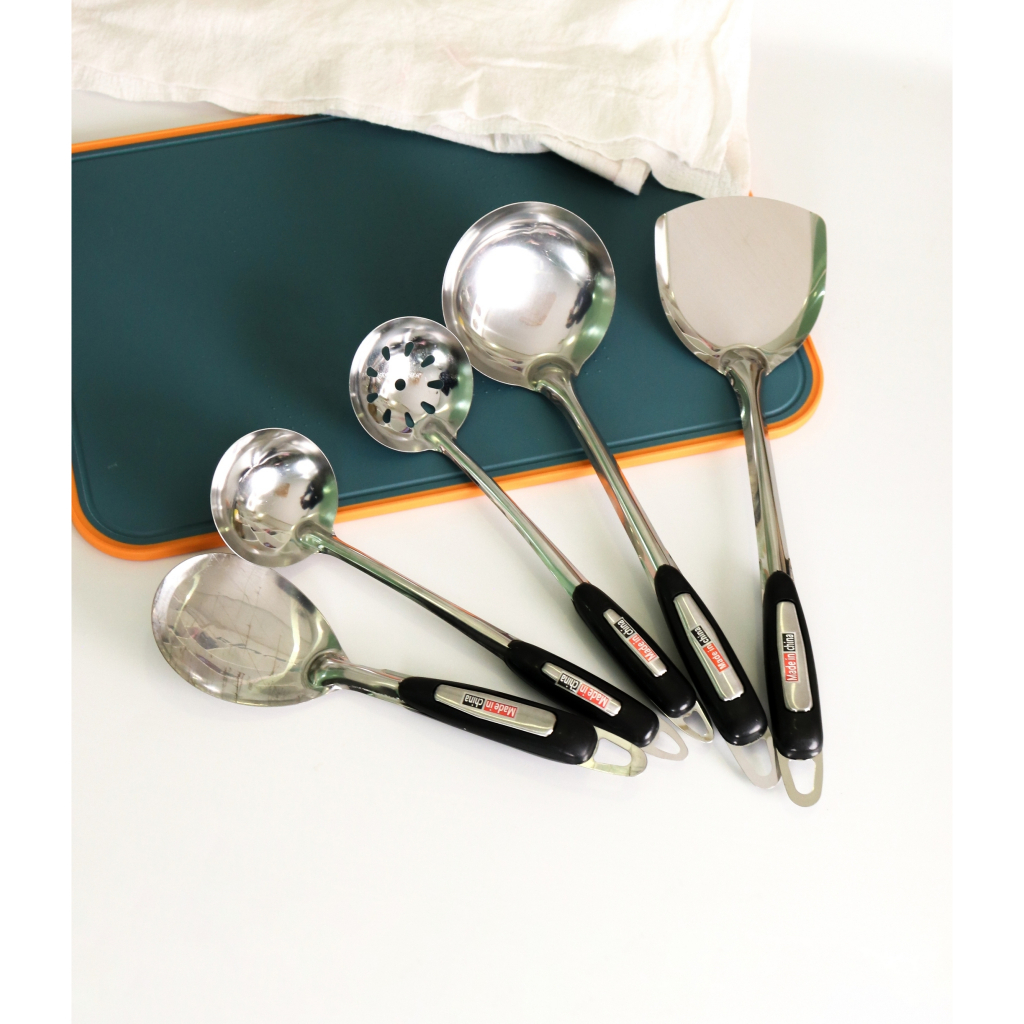 [มี 2 แบบ] ชุดเครื่องครัว 5 ชิ้น ตะหลิว,ทัพพี,กระบวย สแตนเลสเเท้ แข็งแรง ทนความร้อนได้ดี