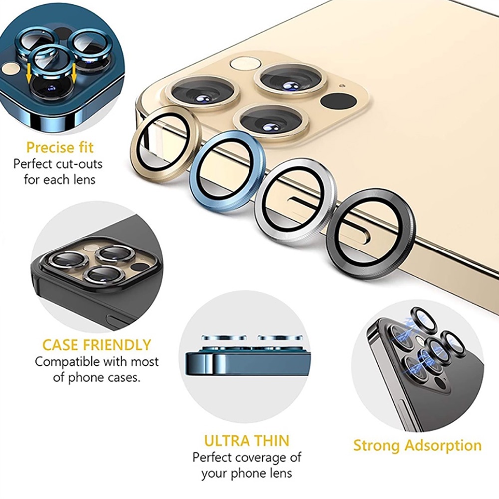 ตัวป้องกันเลนส์กล้องกระจกนิรภัยสำหรับ for iPhone 16 15 13 12 14 Pro Max 11 12 13 Pro 14 Plus ตัวป้องกันกล้องโลหะขนาดเล็ก