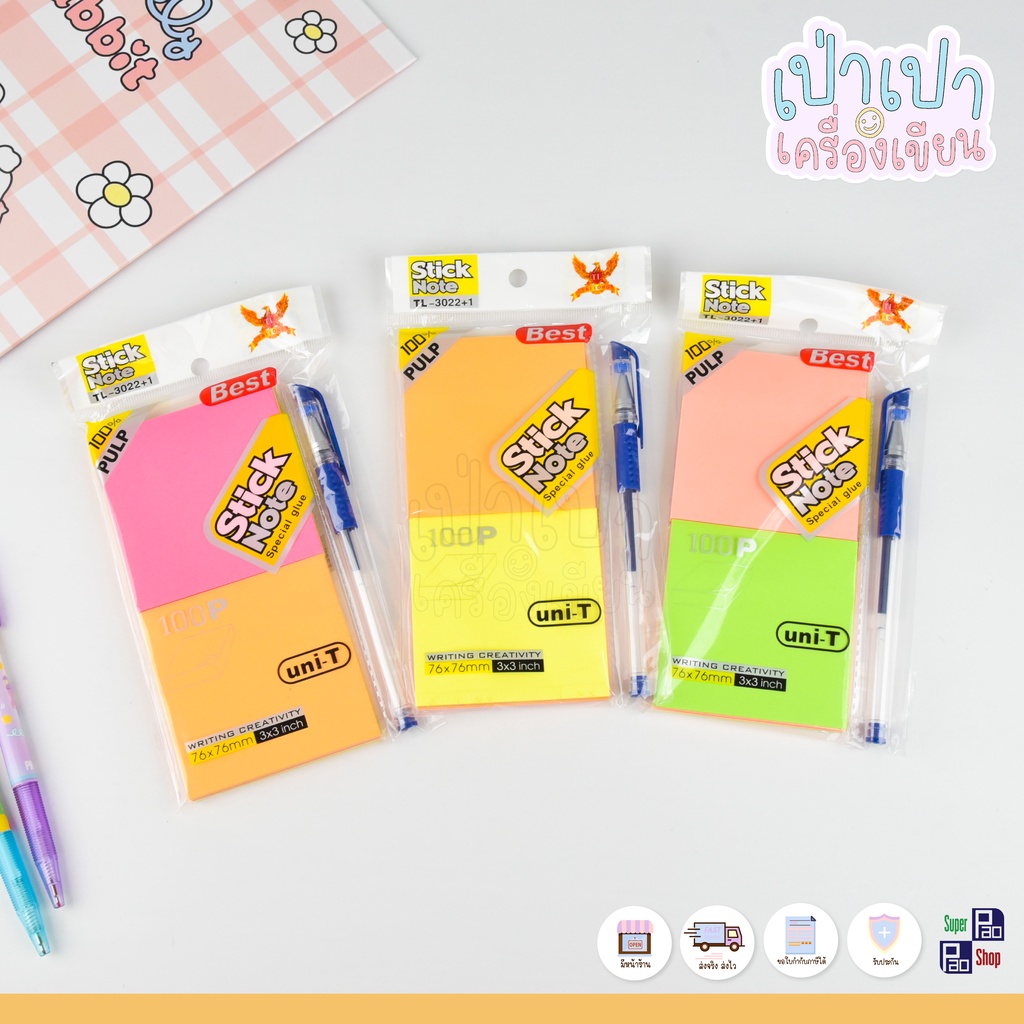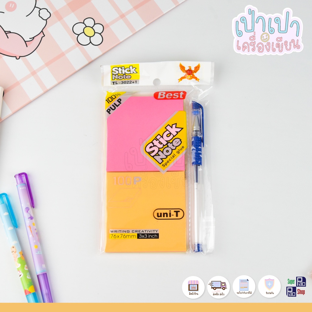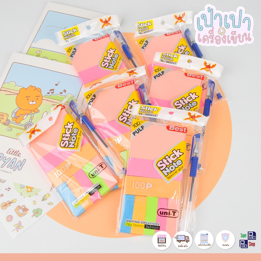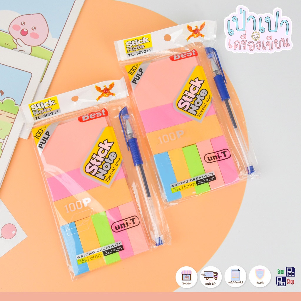 กระดาษโพสอิท+ปากกา กระดาษโน๊ต/ คั่นหน้า กาวในตัว (นีออน/พาสเทล) ส่งของทุกวัน