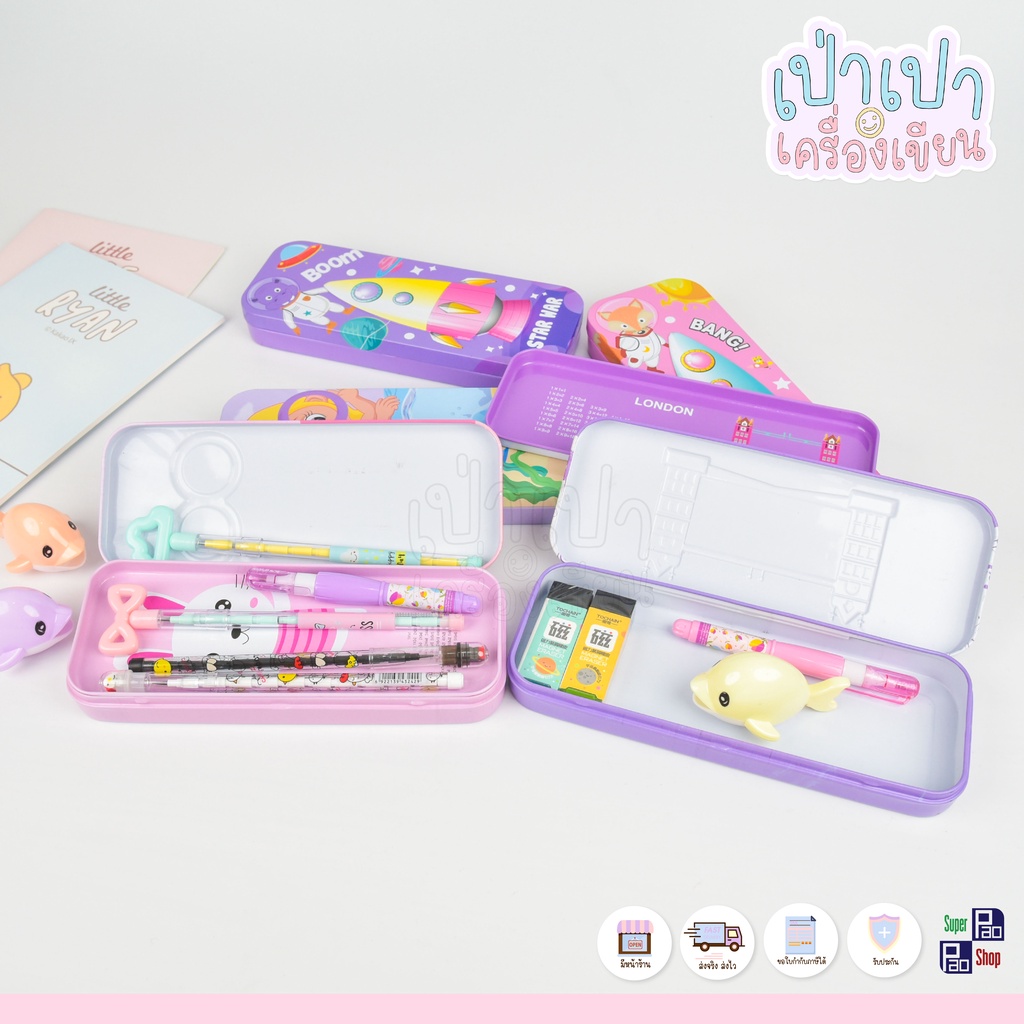 กล่องดินสอเหล็ก 2 ชั้น กล่องดินสอลายการ์ตูน แบบชิ้น ส่งของทุกวัน