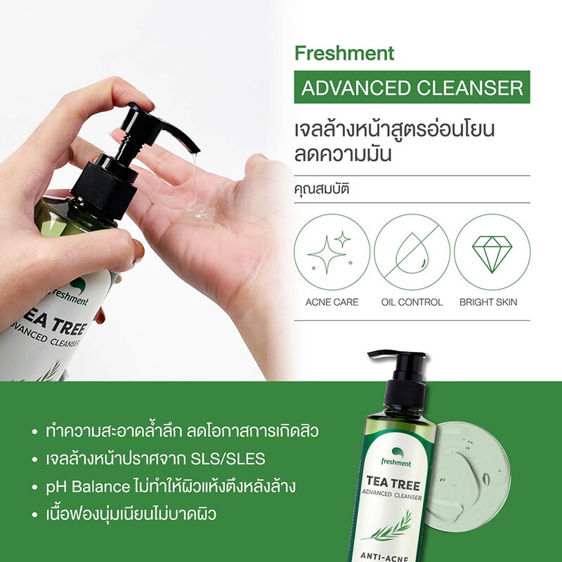 Freshment เจลล้างหน้าทีทรี Anti Acne ลดสิวอุดตัน หน้าใส คุมมัน Tea Tree Advanced Cleanser 260g