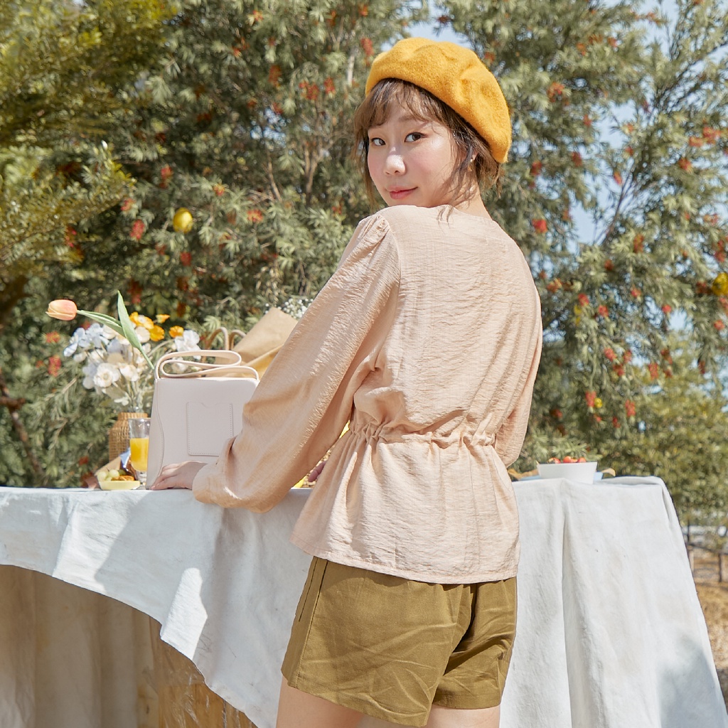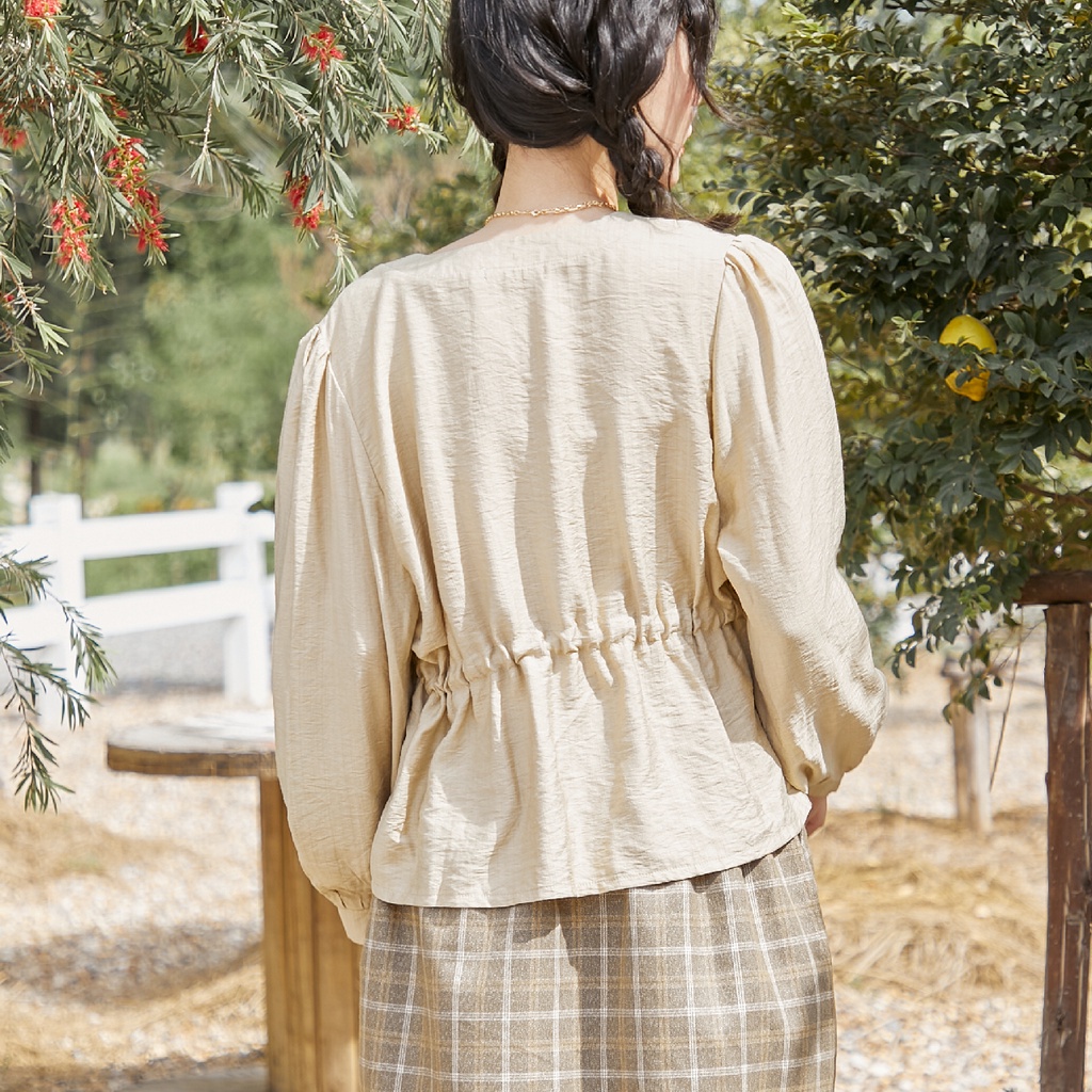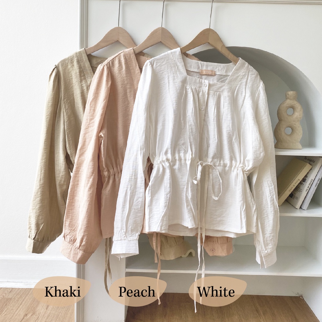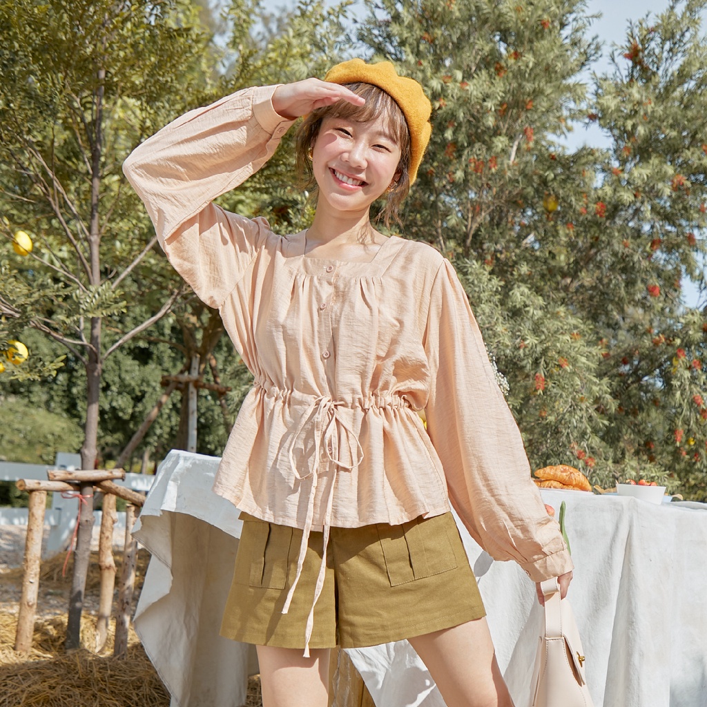 🤎ลด 𝟲𝟬.-พิมพ์ NTBCTT🤎nature.bkk - TPN1128 เสื้อคอเหลี่ยมรูดเอววิเดีย vidia top