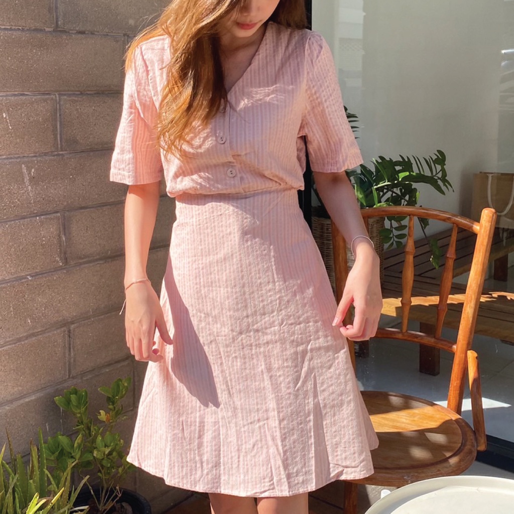 🤎ลด 𝟲𝟬.-พิมพ์ NTBCTT🤎nature.bkk - DR1702 มินิเดรส