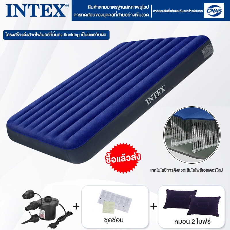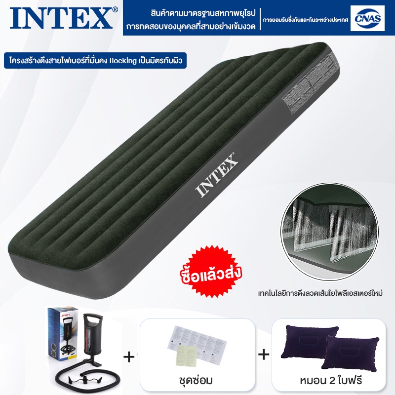 【หมอน2ใบฟรี】INTEX เตียงลม Flocked Air Beds เตียงลมกลางแจ้ง เบาะนอน ที่นอน 2.5 3.5 4.5 5 6ฟุต