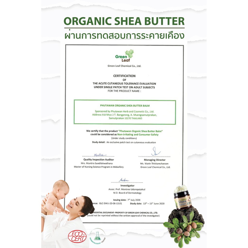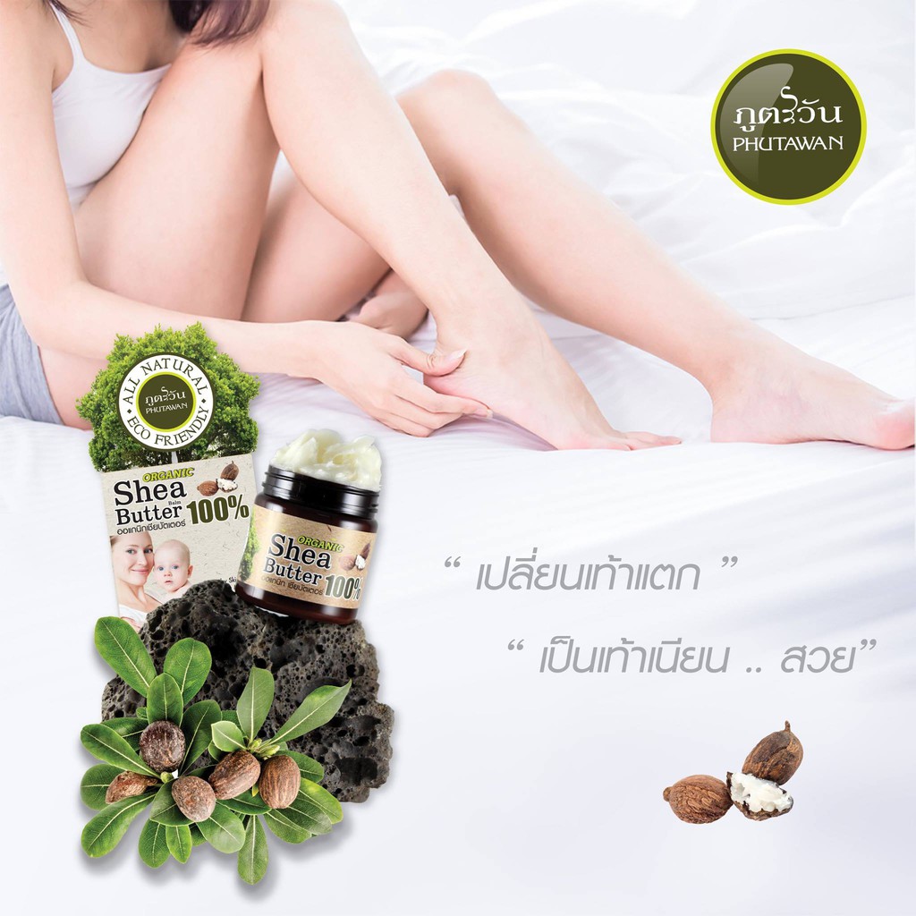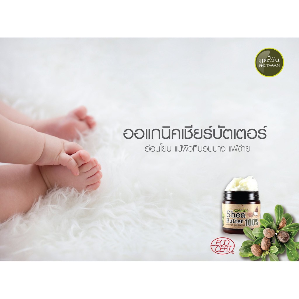 NEW ภูตะวัน เชียร์บัตเตอร์ ออแกนิค 100% Phutawan Organic Shea Butter ลดรอยแตกลาย ผิวแห้ง ปากแห้ง ให้เนียนนุ่ม
