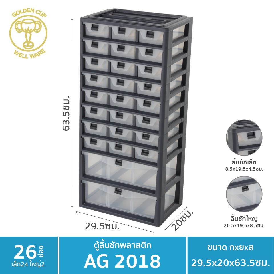 GOLDEN CUP ตู้เก็บของอเนกประสงค์24ช่องเล็ก 2ช่องใหญ่รุ่น AG2018 - Grey