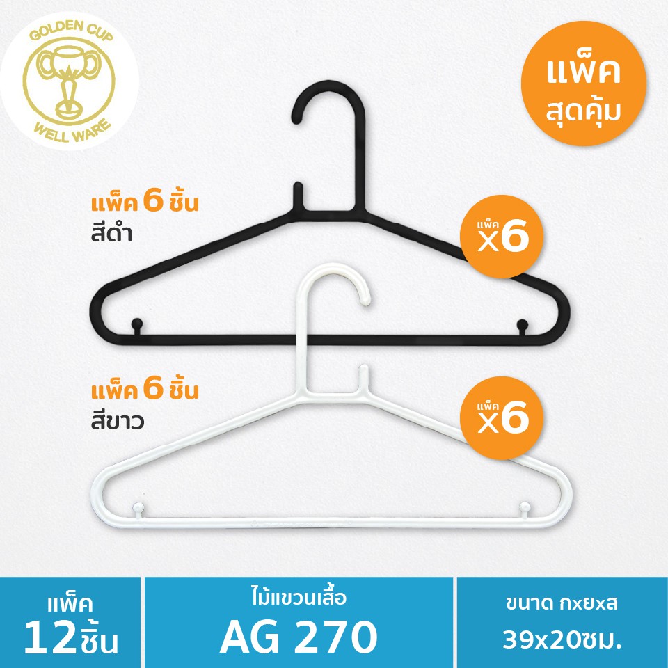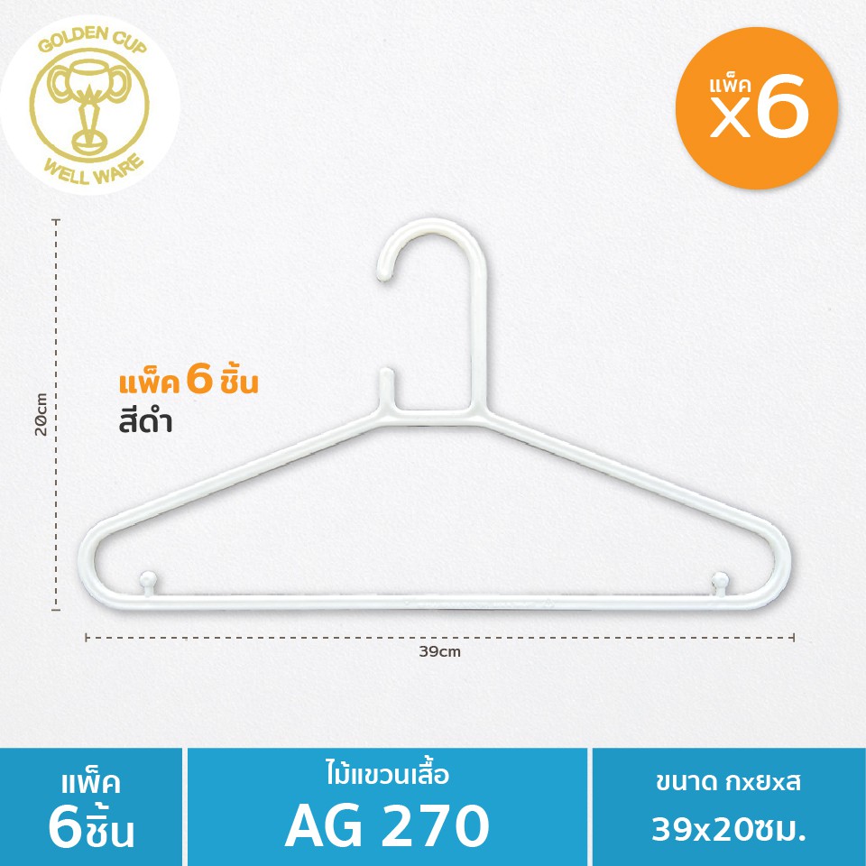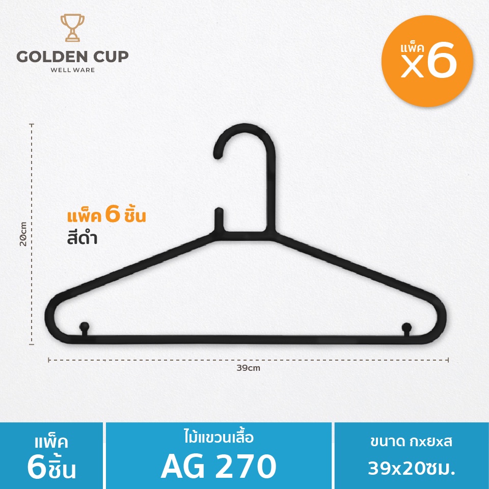GOLDEN CUP ถูกที่สุด!! ไม้แขวนเสื้อสีขาว/ดำ 1 แพ็ค x6 ชิ้น รุ่น AG270