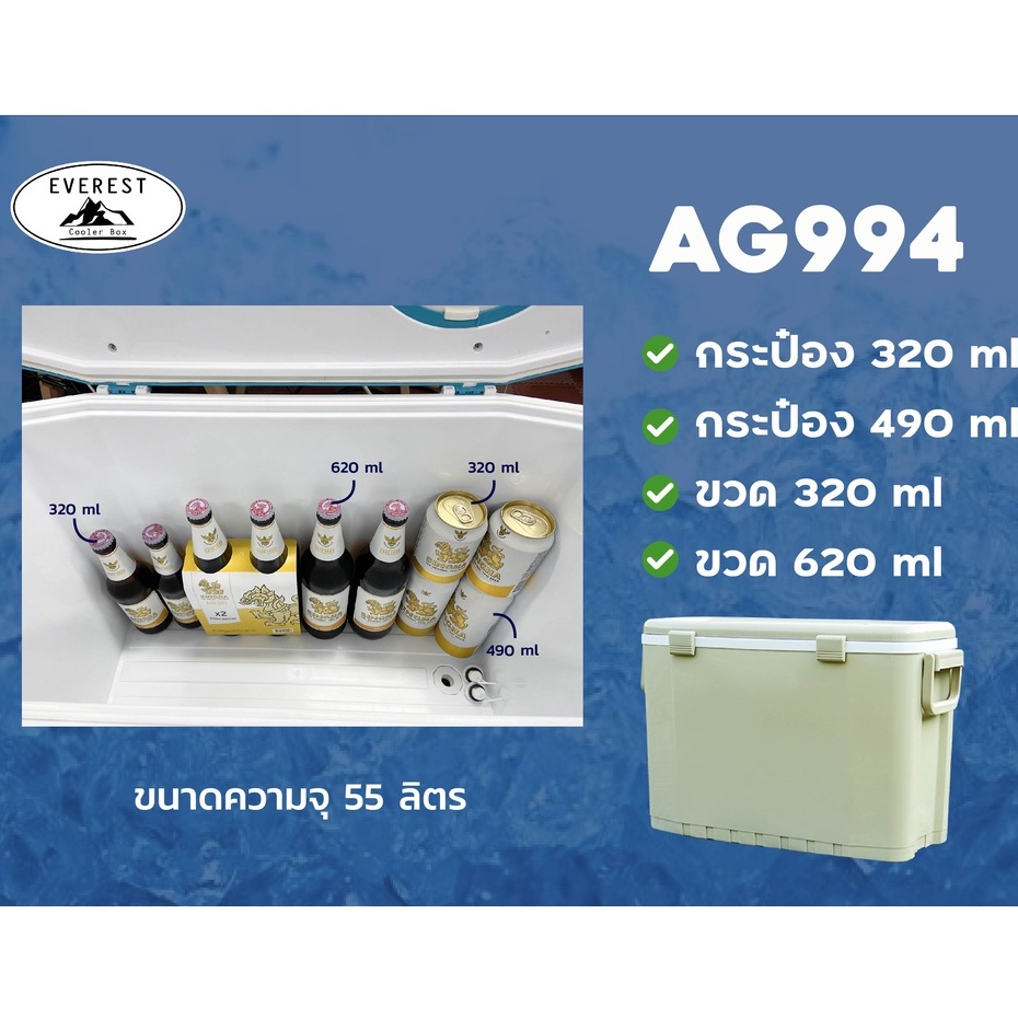 EVEREST กระติกน้ำแข็ง ถังแช่อเนกประสงค์ ขนาด55ลิตร รุ่น AG994 - GREY