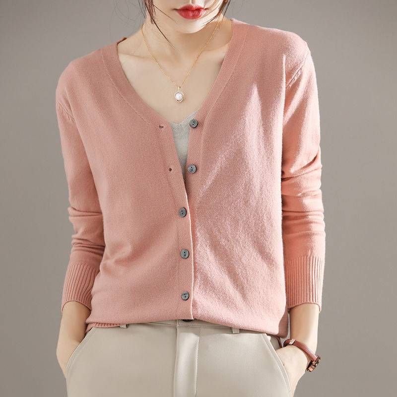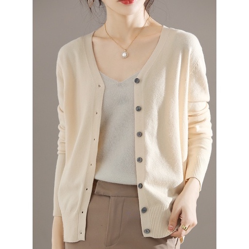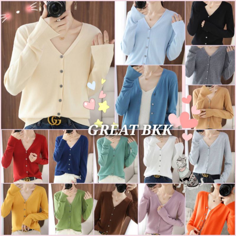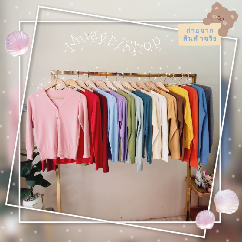 MUAYLY SHOP🔸พร้อมส่ง20สี(M-XL) 💖cardigan ผ้านิ่มสุดถูกสุด เสื้อคลุม [คาร์ดิแกน ไหมพรมคอV]แขนยาว เสื้อกันหนาว สไตล์เกาหลี