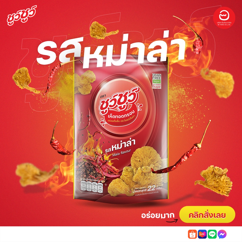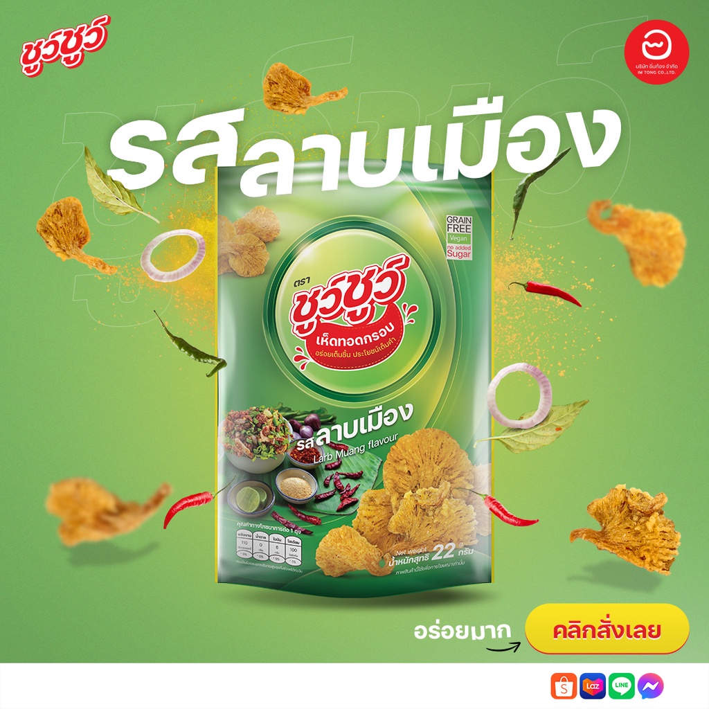 [แพ็คสุดคุ้ม 4 ห่อ] ChewChew ชูว์ชูว์ เห็ดทอดกรอบ 4 รสชาติ ออริจินัล, หม่าล่า, บาร์บีคิว, ลาบเมือง
