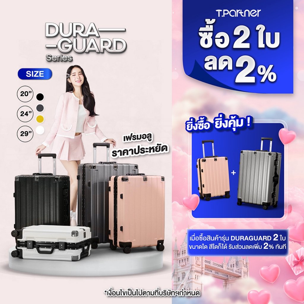 [รับประกัน3ปี] สินค้าแท้ 100% Tpartner กระเป๋าเดินทาง รุ่น Duraguard เฟรมอลูมิเนียม บอดี้ PC+ABS ตัวล็อค ตั้งรหัส 3 หลัก
