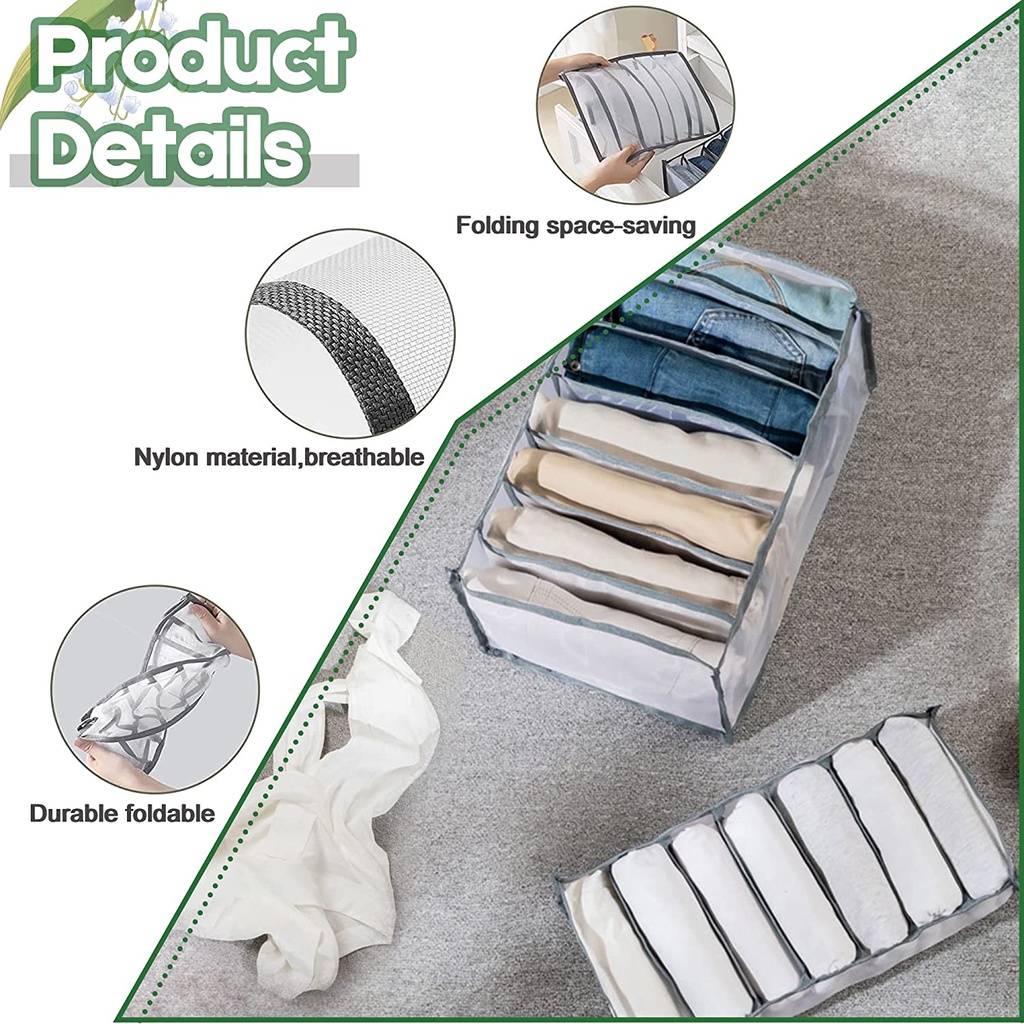 กล่องจัดเก็บเสื้อผ้า กางเกงยีน ถุงเท้า เนคไท 7 ช่อง สำหรับใช้ในครัวเรือน