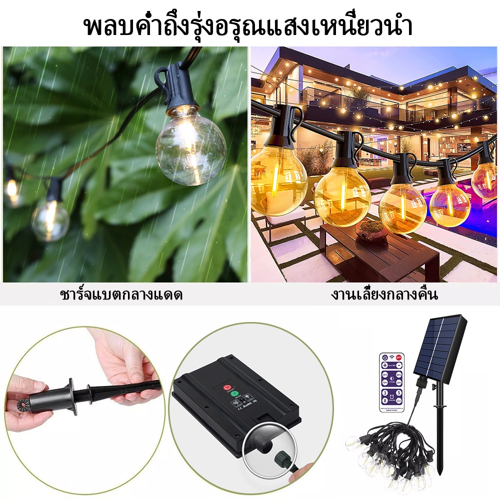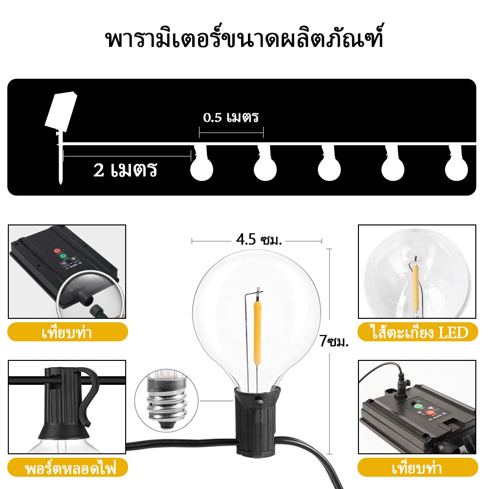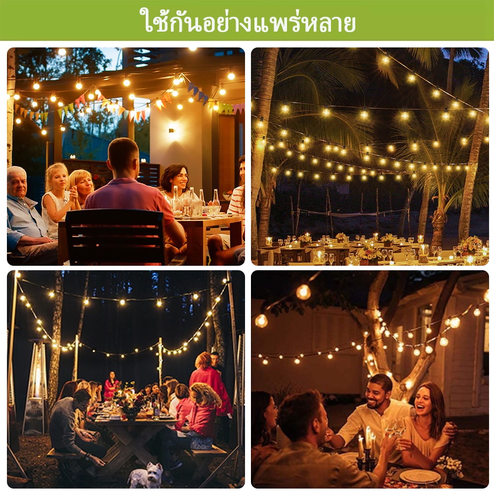 ไฟปิงปอง โซล่าเซลล์ ไฟวินเทจLED 50bulb ยาว 22เมตร หลอดแอลอีดี ขั้ว E12ปลั๊ก กันน้ำ50 bulbทังสเตนไฟโซล่าเซลล์ ไฟตกแต่งสวน