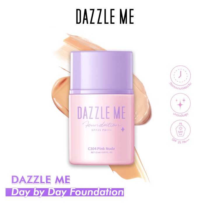 DAZZLE ME Day by Day Foundation รองพื้นเนื้อลิขวิด เกลี่ยง่าย เนื้อสัมผัสบางเบา