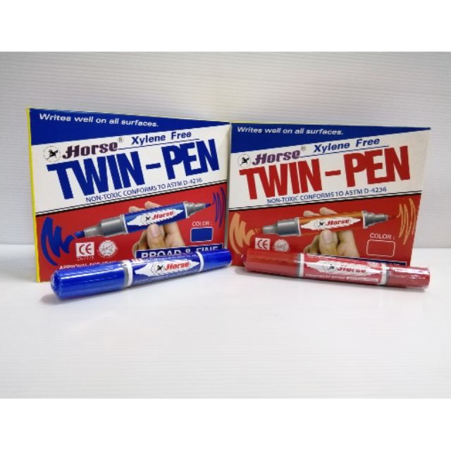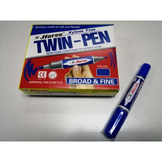 ปากกาเคมี 2หัว ตราม้า สีน้ำเงิน 12ด้าม/กล่อง