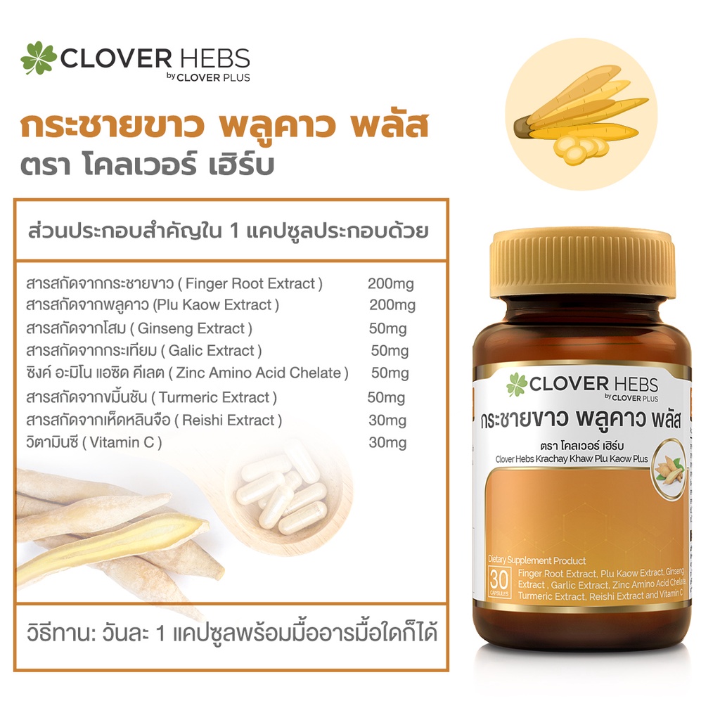 Clover Hebs กระชายขาว พลูคาว พลัส 1 กระปุก (30แคปซูล)