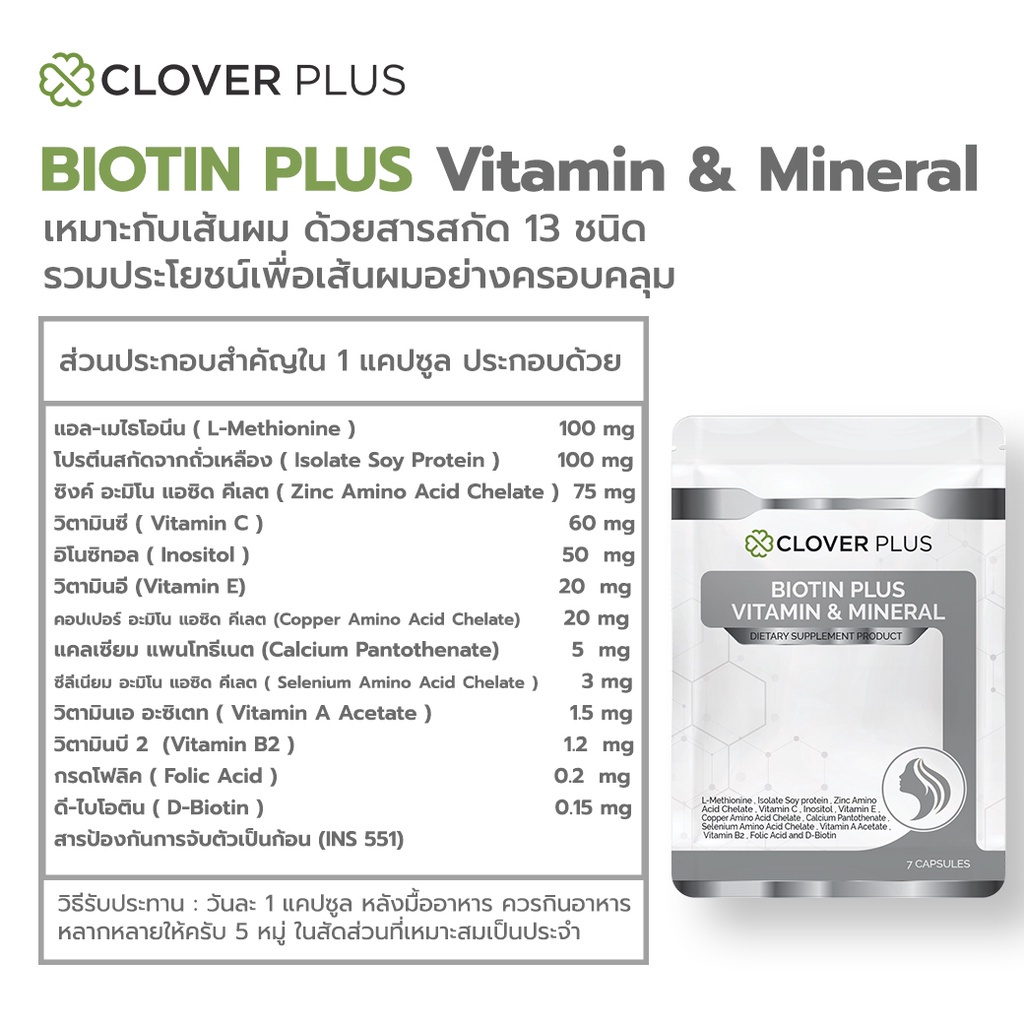 Clover Plus Biotin Plus Vitamin & Mineral 1 ซอง (7แคปซูล)