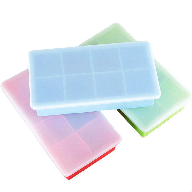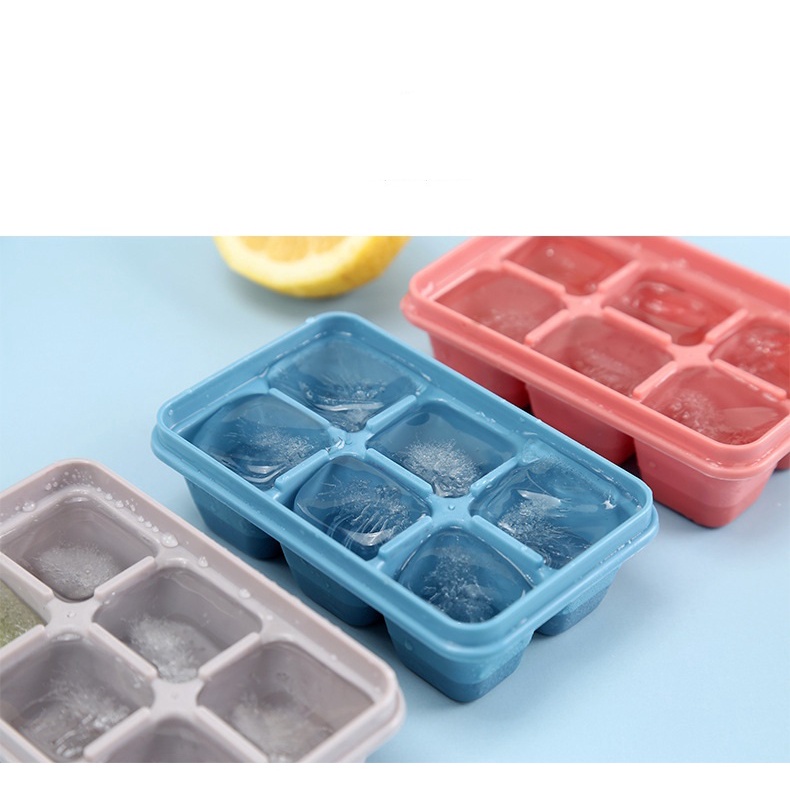 พร้อมส่ง!! ที่ทำน้ำแข็งถาดยางซิลิโคนขนาดใหญ่ ICE CUBE (มีฝาปิด) 8 ช่อง ทำน้ำแข็งและอาหาร ขนมเป็น ซิลิโคนเกรดอาหาร 100 %
