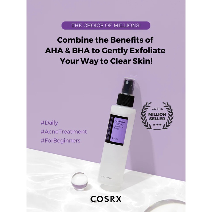 COSRX AHA/BHA Clarifying Treatment Toner 150ml โทนเนอร์ผลัดเซลล์ผิวอย่างอ่อนโยน เพื่อผิวกระจ่างใสเนียนนุ่ม