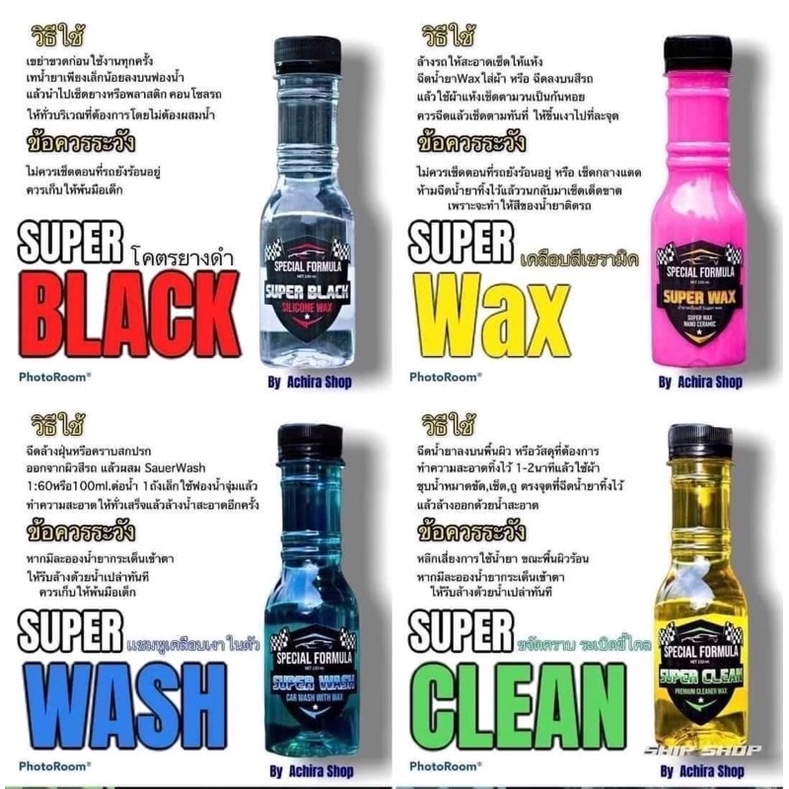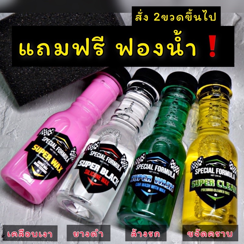 น้ำยาขัดยางดำ Superblackโคตรยางดำ /น้ำยาเคลือบชุดสี /น้ำยาล้างรถ /น้ำยาขจัดคราบ (สั่งแบบ 2ขวดขึ้นไป แถมนฟองน้ำ1ชิ้น )