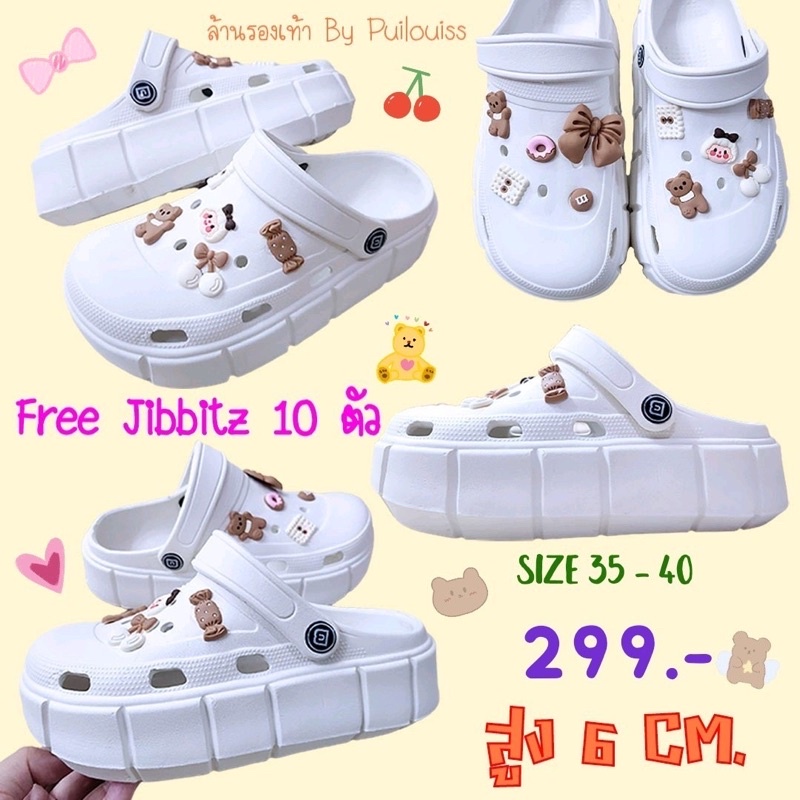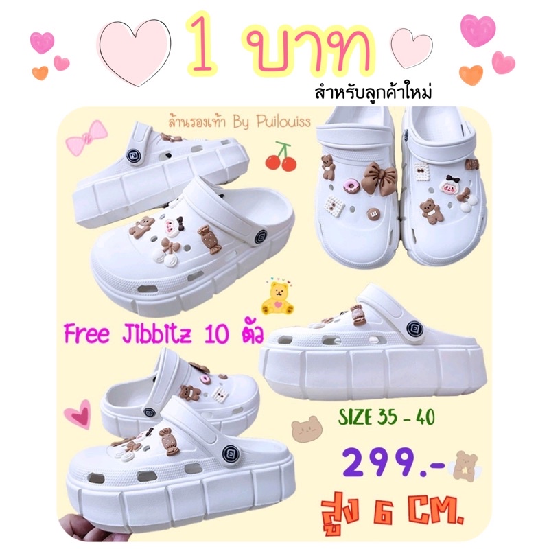 ลูกค้าใหม่จ่าย1บาท หัวโต พื้นสูง สูงขึ้นทันที 6 cm แถมฟรีตัวติดน่ารักๆตามรูปราคาเบา 299.- รองเท้าหัวโตยอดฮิต