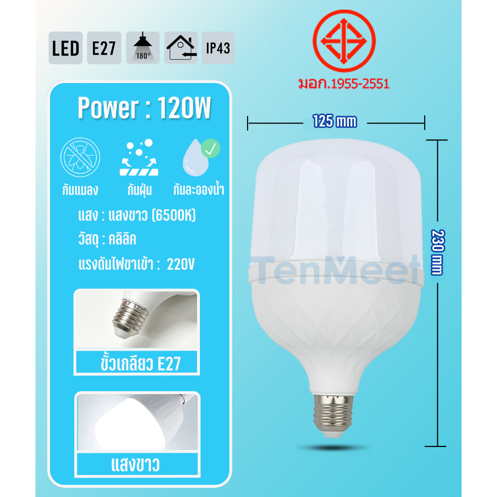 At Light TenMeet หลอดไฟLED HighBulb 120W หลอดไฟ LED ขั้วE27 สว่างนวลตา ใช้ไฟฟ้า220V ใช้ไฟบ้าน