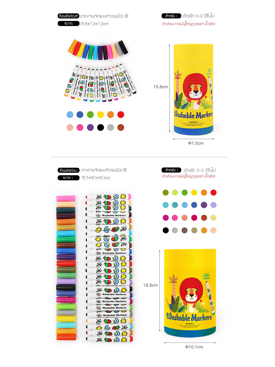 Jarmelo (Joan Miro) สีเมจิกหัวมนสำหรับเด็กเล็ก Round Penpoint Washable Markers เสริมพัฒนาการ 1+ ขวบ