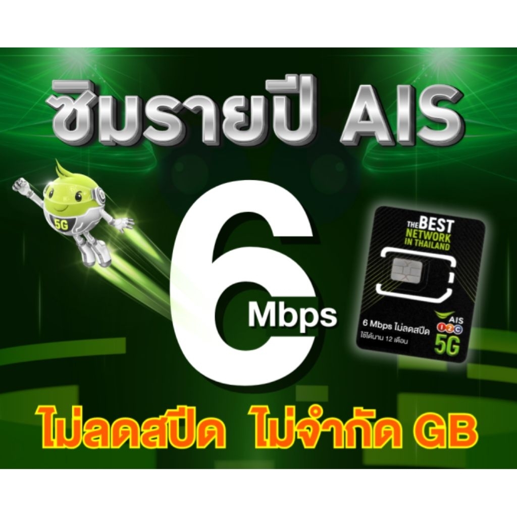 ซิมเทพ AIS รายปี แรงๆ 6 Mbps ไม่ลดสปีด ไม่จำกัด ใช้งานได้นาน 1ปีเต็ม เบอรใหม่ (สินค้าขายดีเน็ตแรงกว่าเดิม!)