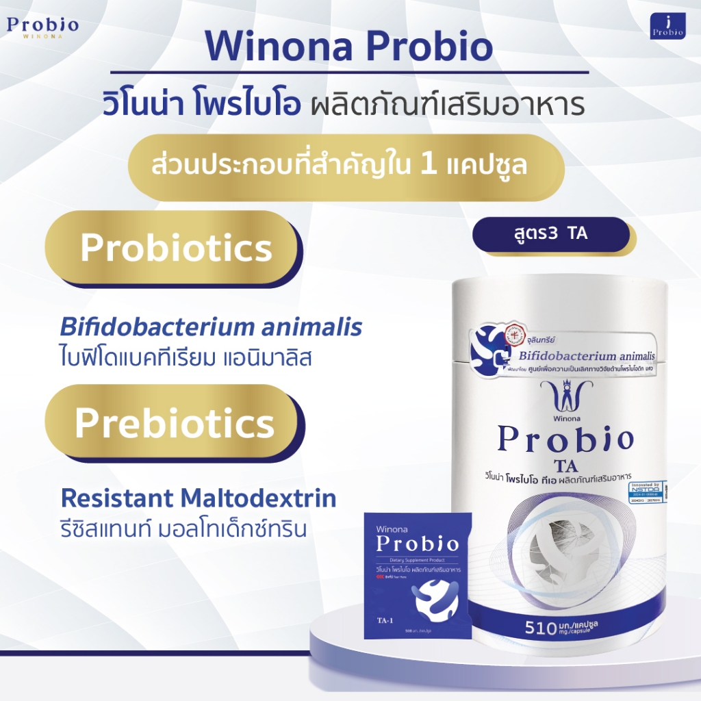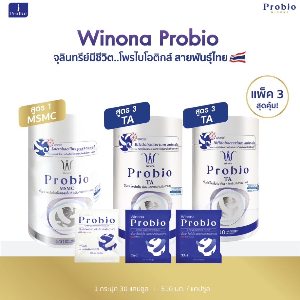Winona Probio TA โพรไบโอติกส์ สายพันธุ์ไทย (สูตร3) 2 กระปุก+Winona Probio MSMC (สูตร1) 1 กระปุก
