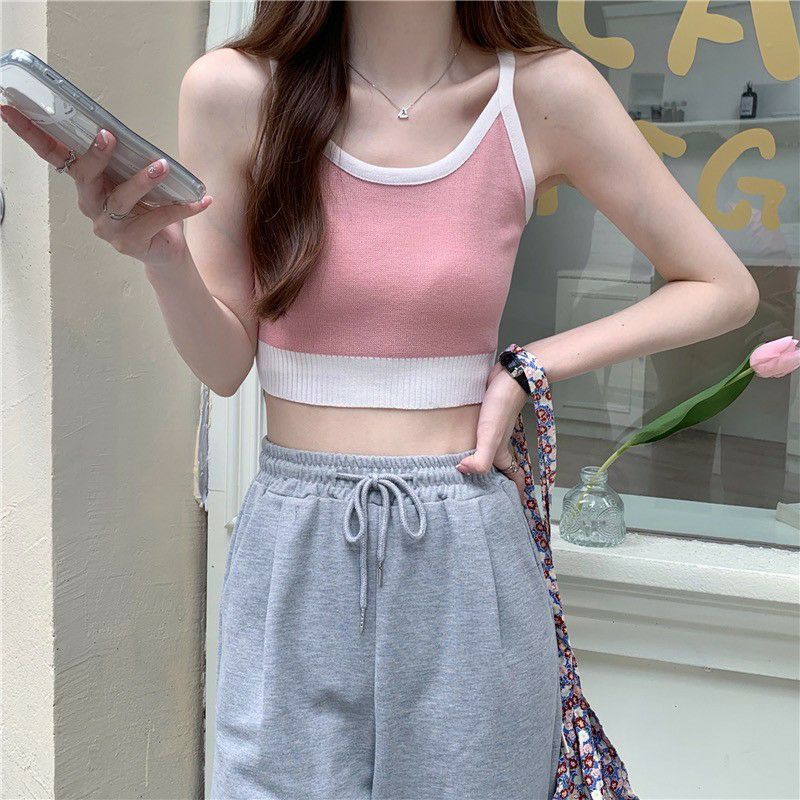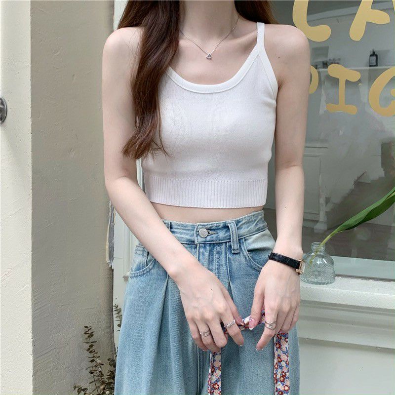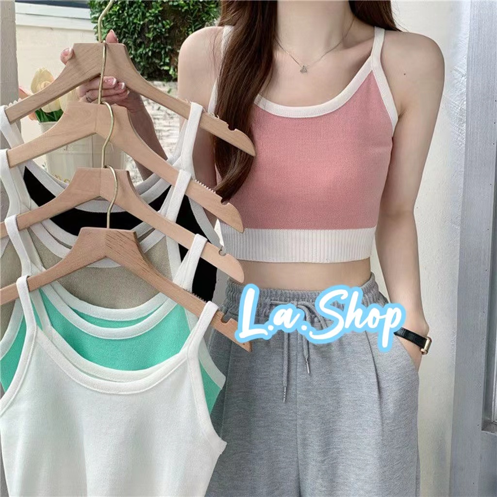 L.A Shop พร้อมส่ง เสื้อสายเดี่ยวไหมพรม ทรงครอปตัวเล็กน่ารักสีพาสเทล "22018"