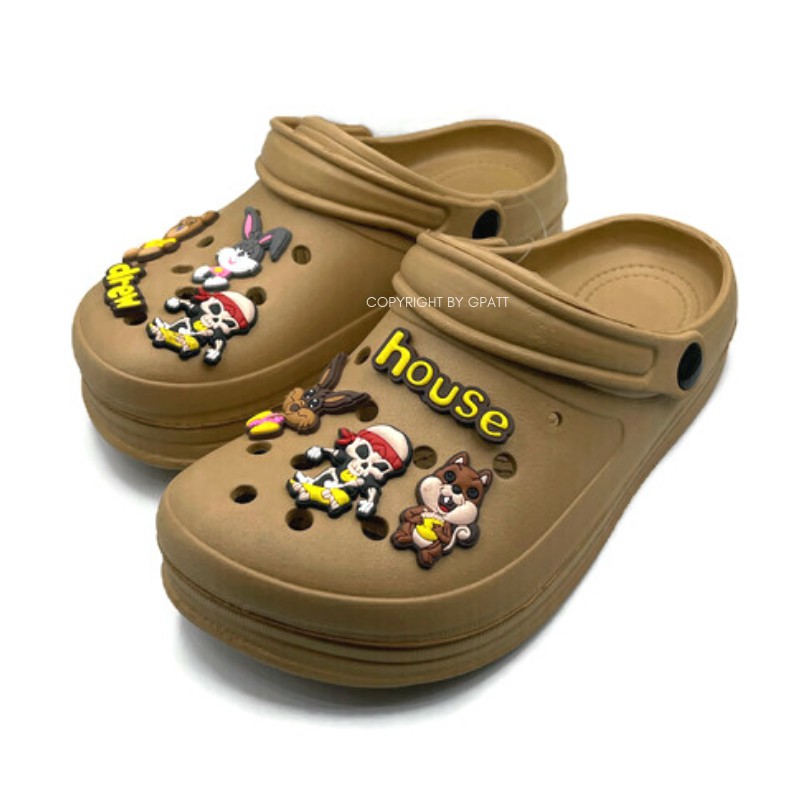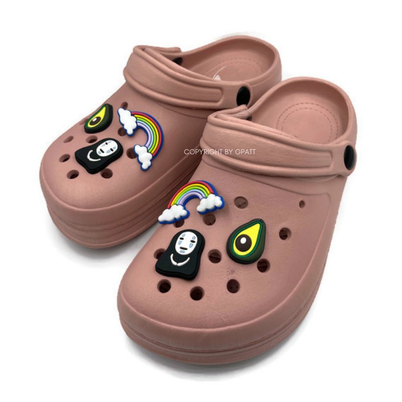 Gpatt : Plain Plain Clogs with jibbitz รองเท้าสวมผู้หญิงหัวโตแฟชั่น สีเอิร์ธโทน แถมฟรีสติ๊กเกอร์ใหม่