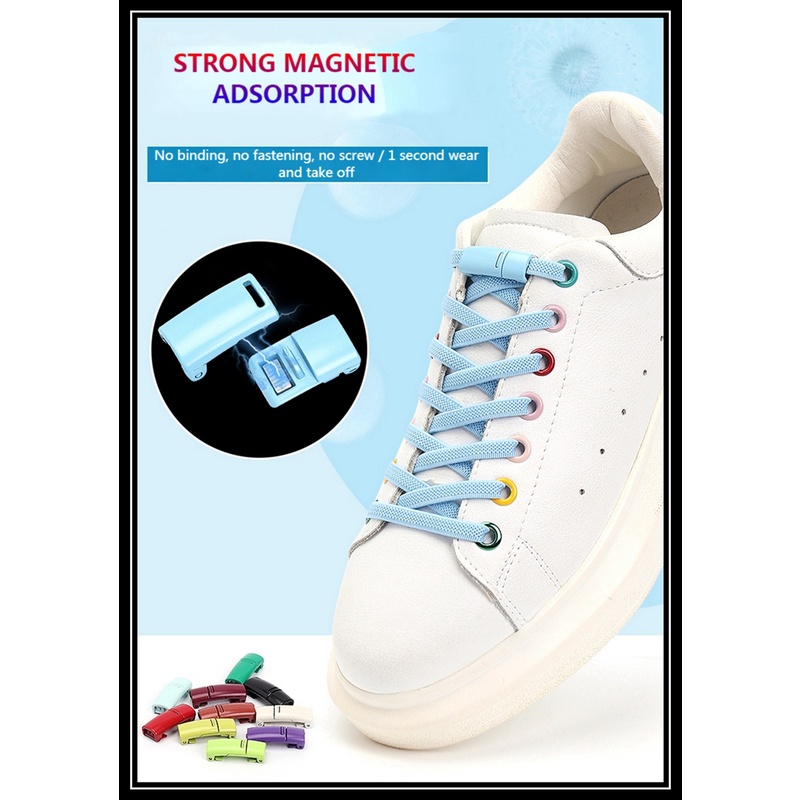 เชือกผูกรองเท้า แบบแม่เหล็ก ยืดหยุ่น ติดตั้งง่าย สําหรับรองเท้าผ้าใบ จํานวน 1 คู่