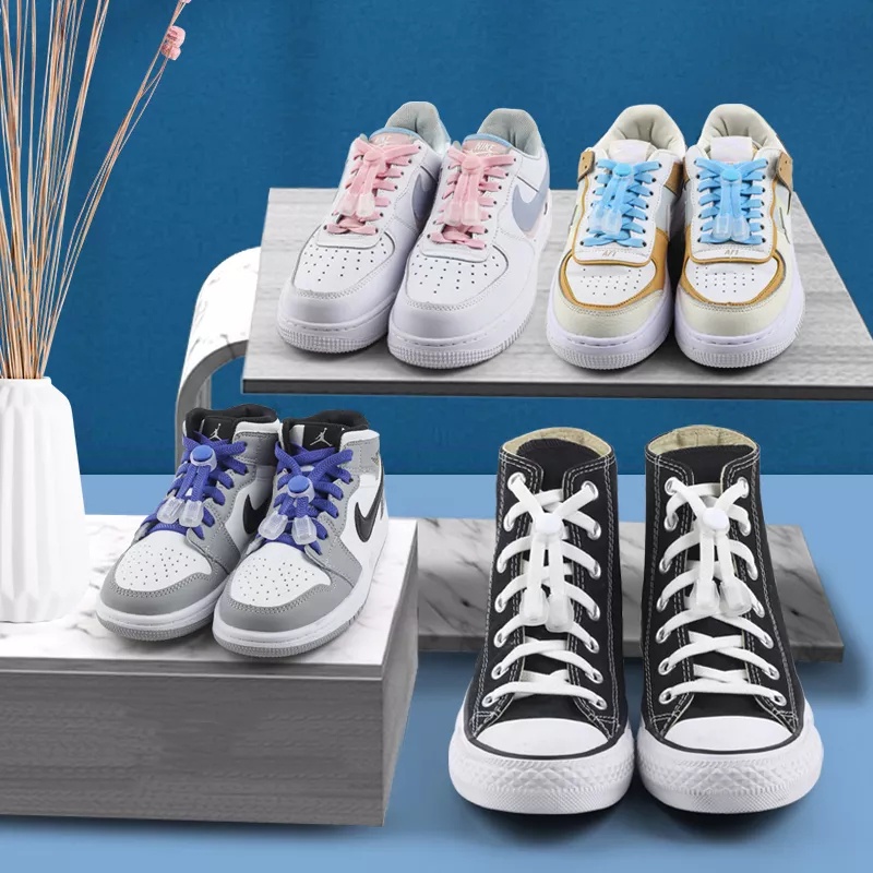 เชือกผูกรองเท้า หัวเข็มขัดรองเท้าผ้าใบ แบบแบน ไม่ต้องผูกเชือก สไตล์คลาสสิก สําหรับเด็ก และผู้ใหญ่