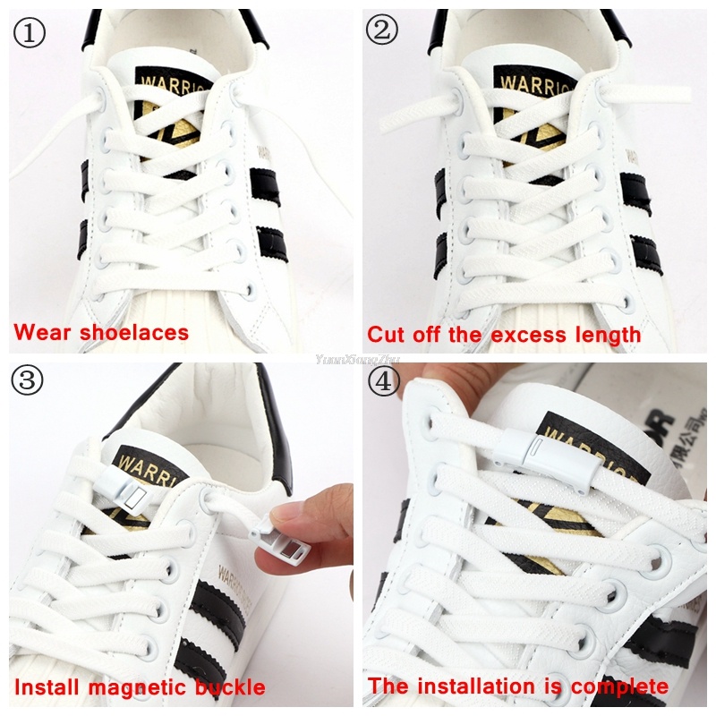 เชือกผูกรองเท้าแบบไม่มีเชือกล็อคแบบแม่เหล็กรองเท้าผ้าใบแบบแบนสำหรับผู้ใหญ่เด็ก 1 คู่