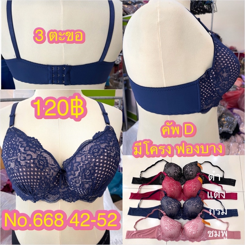 No.668 เสื้อในไซส์ใหญ่สาวอวบ ทรงเต็มเต้ามีไซส์42-52 คัพD มีโครง ฟองบาง ลูกไม้นิ่มใส่แล้วสวยมากๆ ค่ะ
