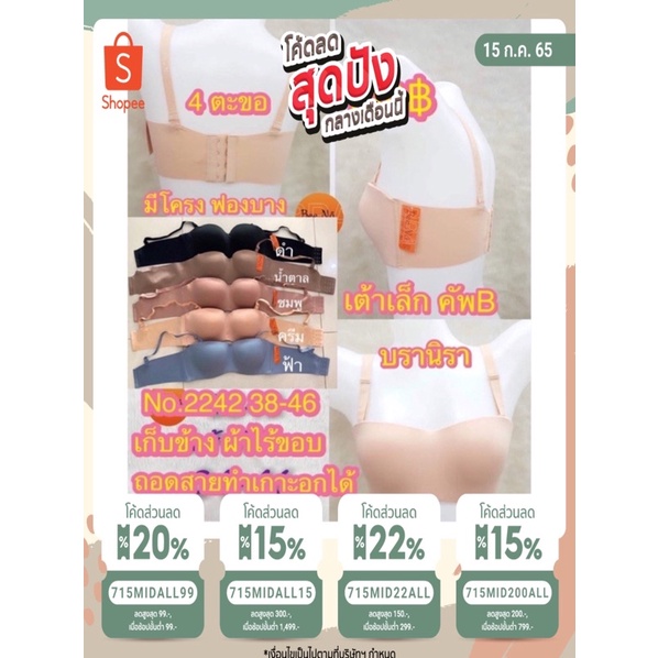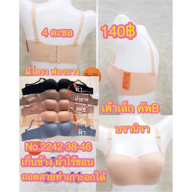 (WRPPBV ลดทันที 20%ไม่มีขั้นต่ำ ลดสูงสุด 40.-)บรานิรา บราถอดสายทำเกาะอกแบบเต้าเล็ก คัพB มีไซส์ 38-46 สายเป็นผ้าไร้ขอบ