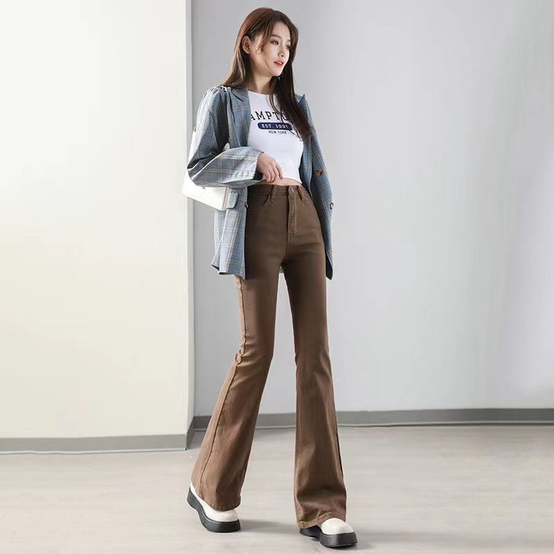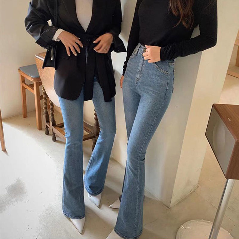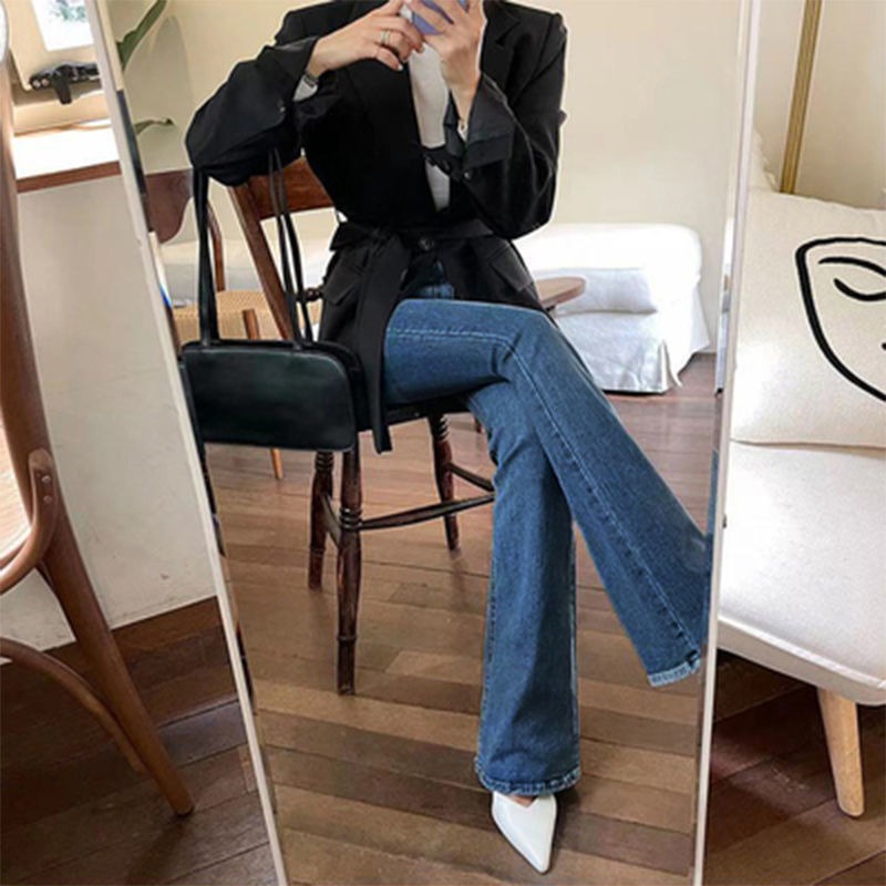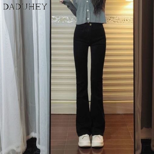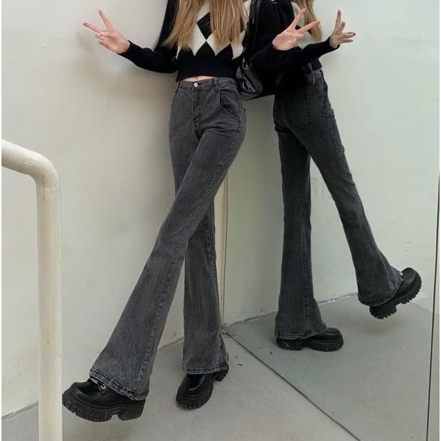 DaDuHey ยีนส์ผู้หญิง ขาบาน ทรงชิค แมทช์ง่าย ไม่เกะกะ ยีนส์เนื้อแข็ง 7 สี