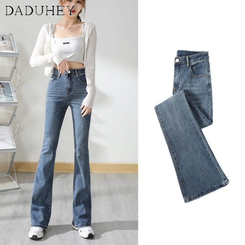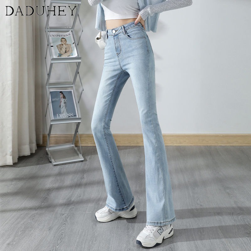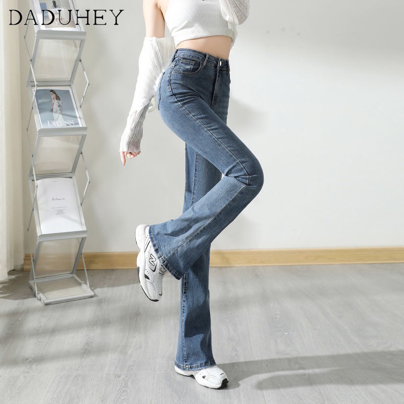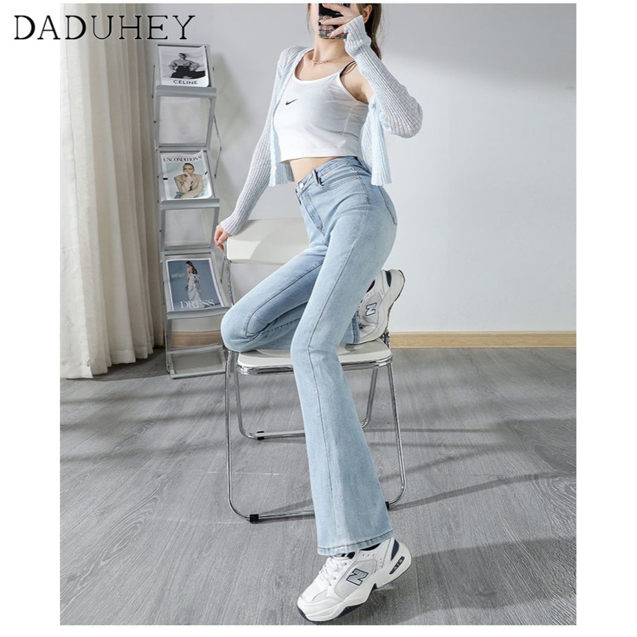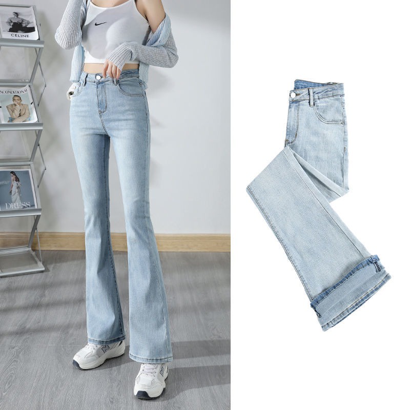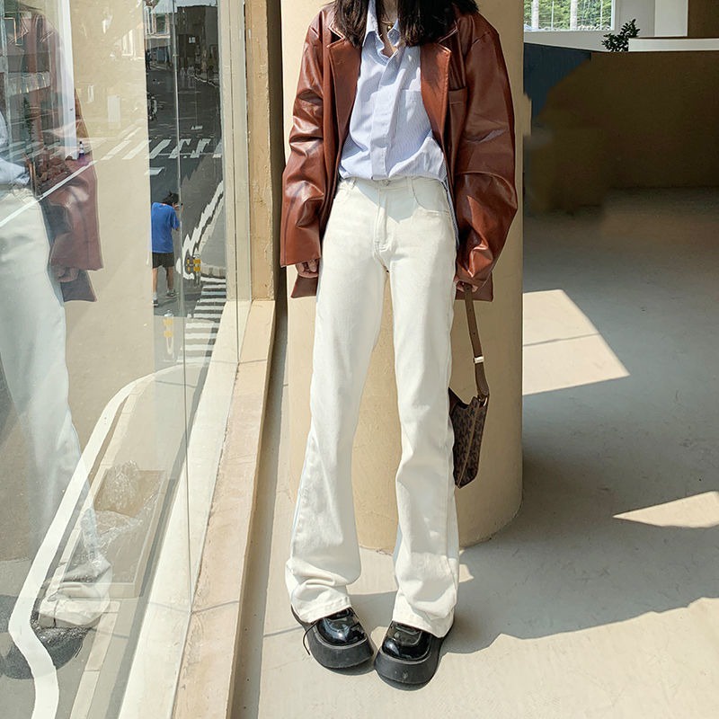 DaDuHey💕 ไม่ซ้ำใคร สไตล์เกาหลี ยีนส์ขาบานไมโคร กางเกงขายาวผู้หญิง ทรงสลิม มีสไตล์ ใหม่ ปี ยีนส์สีล้วน