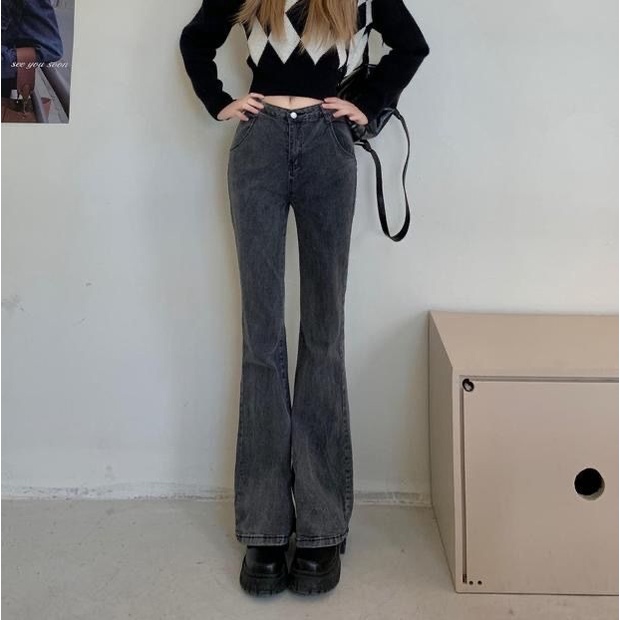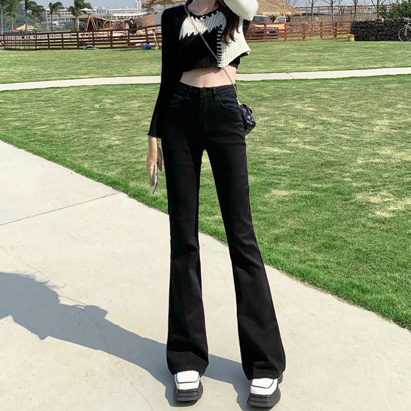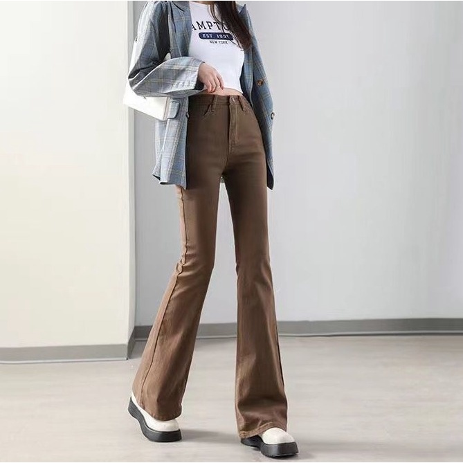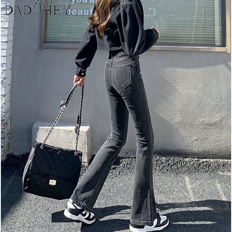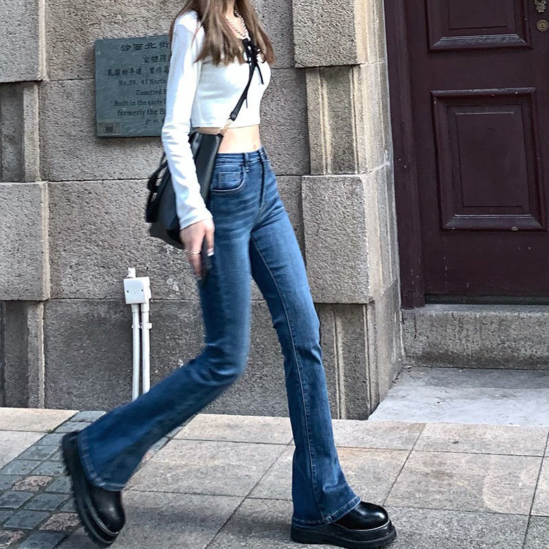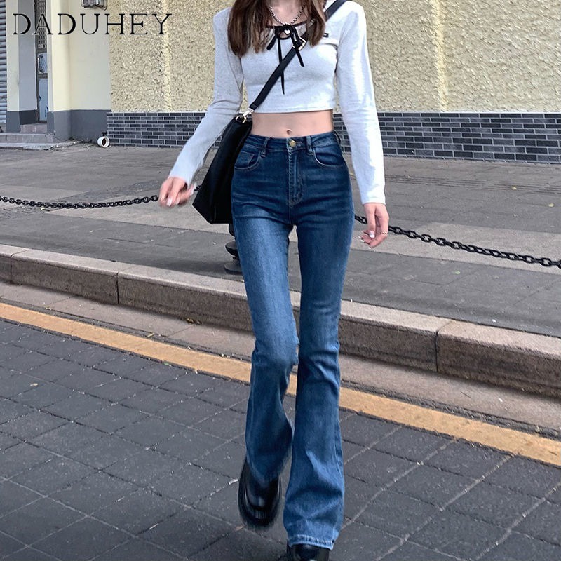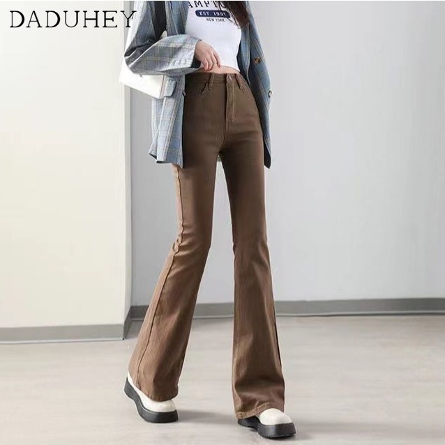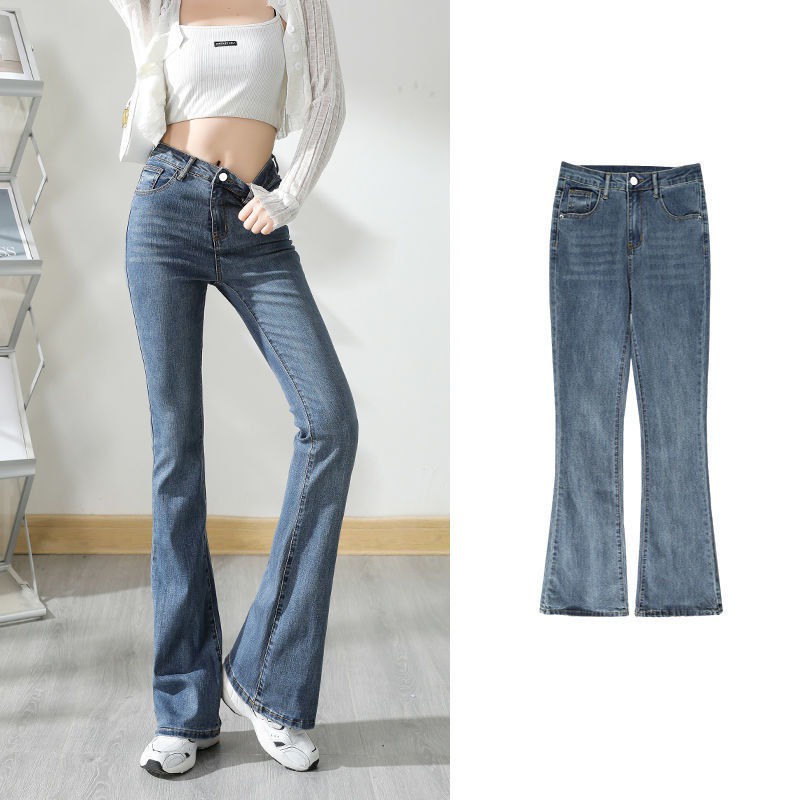 DaDuHey💕 ไม่ซ้ำใคร สไตล์เกาหลี ยีนส์ขาบานไมโคร กางเกงขายาวผู้หญิง ทรงสลิม มีสไตล์ ใหม่ ปี ยีนส์สีล้วน
