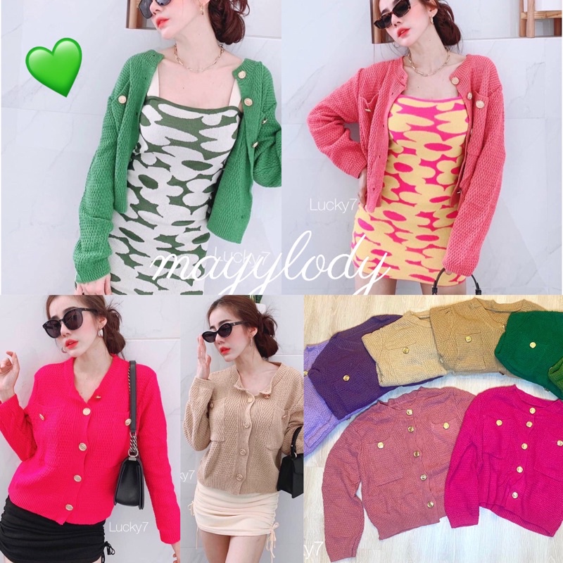 💚mayylody💚 คาร์ดิแกน กระดุมทอง ผ้าไหมพรมเกรดพรีเมียม งานสวยหรูดูแพงมาก