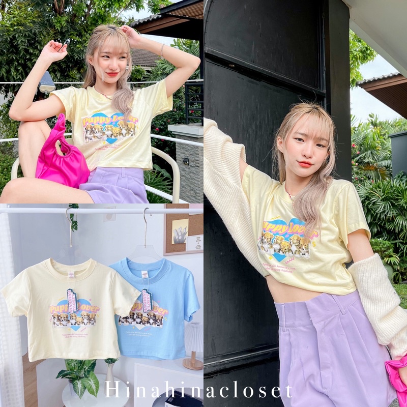 พร้อมส่ง🐶🐾 เสื้อยืด เสื้อครอป สไตล์เกาหลี สกรีน Puppy Lover🦴💕 สีละมุนมาก☁️ รหัส 825